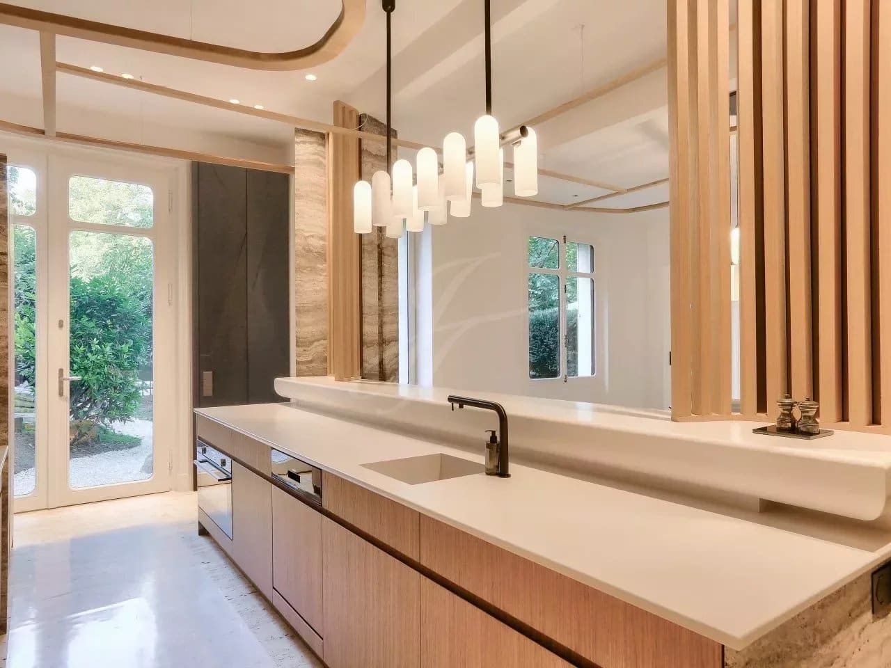 Cap d'Ail Luxurious, fully renovated 540 m2 Belle Epoque villa with exceptional views of the Mediterranean. Luxury and serenity are the watchwords of this property. It is composed as follows: Two living rooms, two dining rooms offering a very elegant living space, an office, 7 en-suite bedrooms with sea-view dressing rooms, including a very beautiful master bedroom with terrace. Two kitchens, including a professional kitchen, a cinema room, a games room, a wine cellar, a gym, a sauna, a summer kitchen, all set in a 1200 m2 garden with panoramic sea views. A large garage and indoor parking spaces complete the property. The property is equipped with a security system: alarm, armored doors, electric gate and video surveillance guarantee peace of mind.