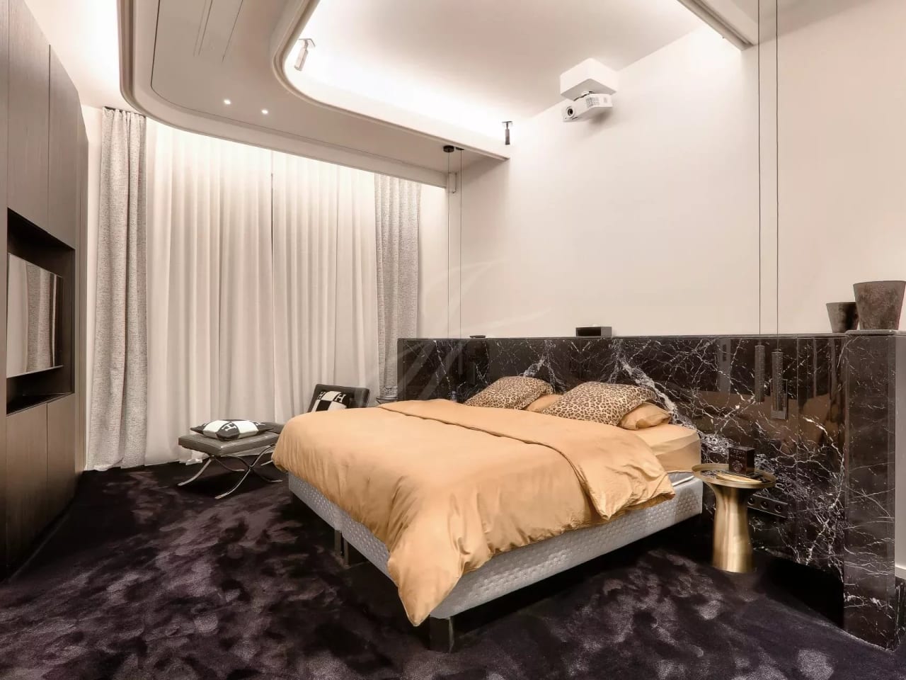 In one of the most prestigious residences on the Croisette, near Port Canto, with a superb view over the Bay of Cannes, magnificent duplex apartment with 580 m² of living space. The apartment's seductive decor, top-of-the-range amenities, 428 m² of terraces and indoor rooftop pool (7m x 3.5m). On the 7th floor, the apartment comprises an entrance hall opening onto a beautiful reception room with living room and dining room opening onto terrace, fully equipped kitchen, wine cellar, laundry room, storage room, master bedroom with dressing room, full Madame bathroom and Monsieur shower room, bedroom opening onto terrace with shower room, as well as a guest toilet. Two further bedrooms with en suite bathrooms overlooking the Croisette and a fifth bedroom with en suite shower room and view of Cap d'Antibes. Children's dance and games room. On the 8th floor, the apartment comprises an entrance hall opening onto a beautiful reception room with living room and dining room opening onto a terrace, fully equipped summer kitchen with wine cellar, guest toilet, as well as an indoor swimming pool (7mx3.5m), sauna, hammam and shower. 3 garages, 3 utility rooms and a cellar.