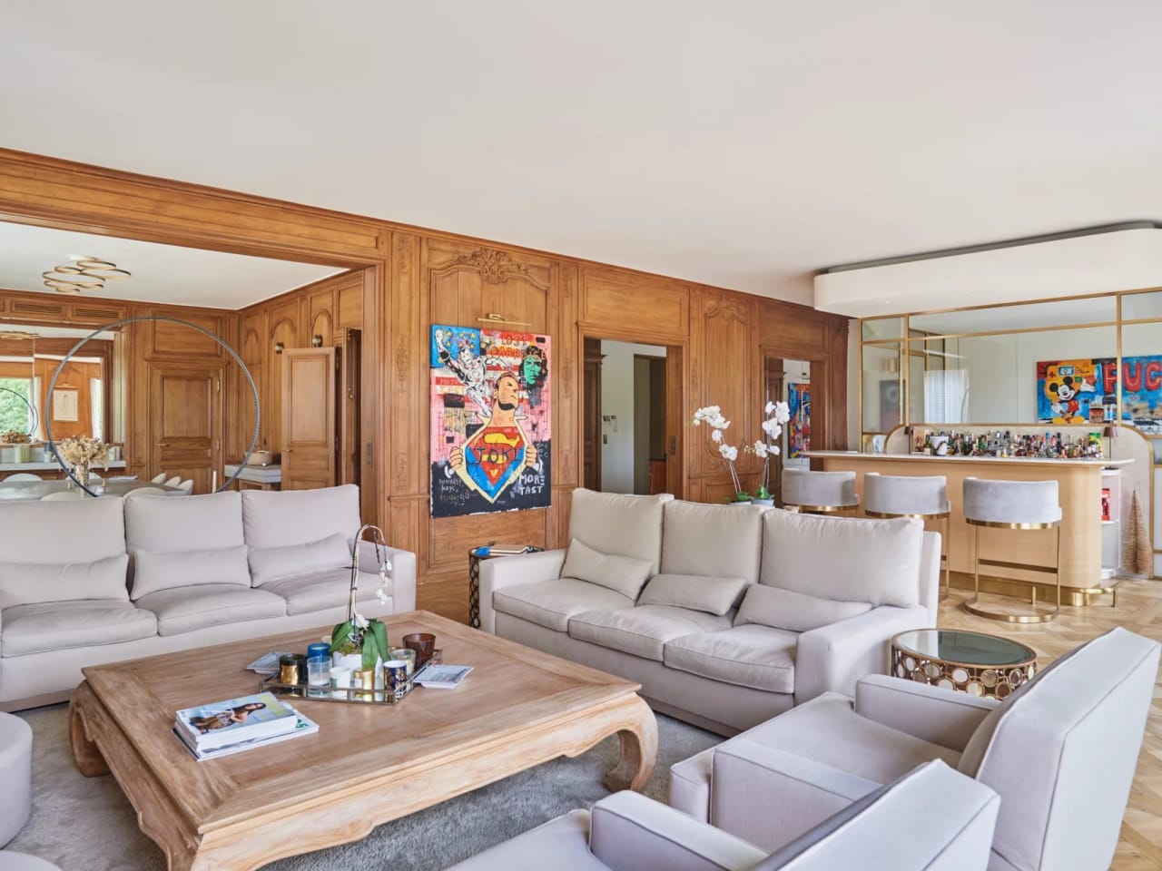 Le Vésinet. Calm and serenity are the utmost luxury for this sublime Palais located just 20 minutes away from Paris porte Maillot. Nested in the luxurious Parc des Ibis of Le Vesinet, this inspired Grand Trianon palace provides 1769 sq. meters of family and entertaining space over lower ground, garden level and ground floor. The property includes the main villa, a caretaker villa, staff accomodations, a Guest house and garages, set in a 7000 sq. meters immaculate and lush landscaped grounds. RECEPTION AREA - GROUND FLOOR • Reception hall • Reception room • Living room • Winter garden • La Cornue kitchen • Dining room • Galerie PRIVATE AREA - GARDEN LEVEL • Private living room • 3 bedrooms suite • Owner’s suite • «His and Her» dressing rooms • «His and Her» bathrooms BASEMENT • Cinema • Game room • Massage and yoga room • Swimming pool • Sauna/hammam • Changing rooms and showers • Fully equipped gym • Squash court • Closed garage for 3 cars • Technical rooms HERMITAGE HOUSE • Independent Guest house with: - Living room, office, kitchen, laundry room - 4 Bedrooms with bathrooms LANDSCAPED GARDENS AND GROUND • Japanese garden • Roseraie • Soccer field • Fountain • Greenhouse OUTBUILDINGS • Independent caretaker villa with 1 bedroom, bathroom, living room and kitchen • Independent staff villa with 2 bedrooms, bathrooms, living room and kitchen SECURITY FEATURES • Security throughout the property with highly sophisticated surveillance and monitoring equipment.