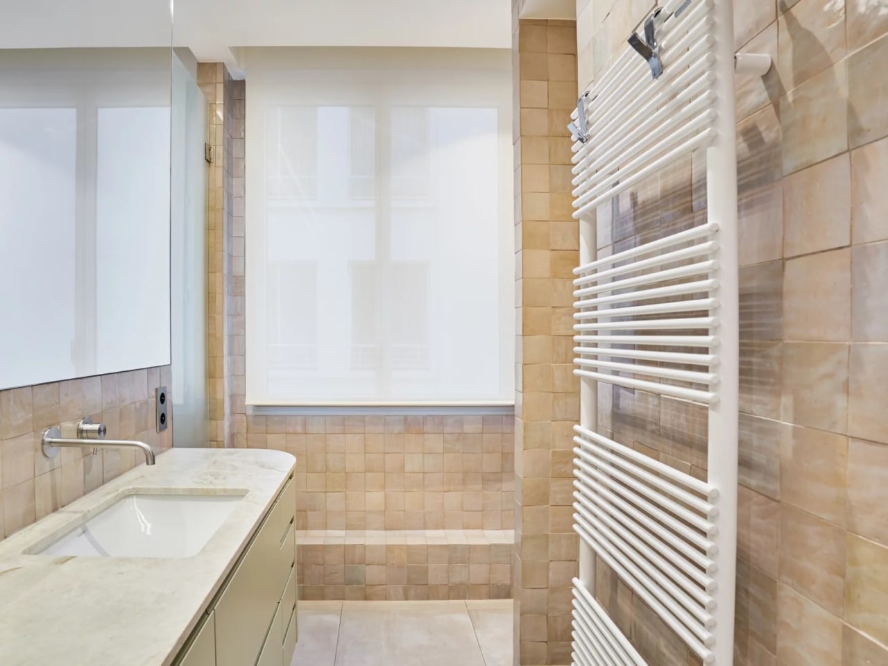 Located in one of the best areas of Madrid, this exceptional property combines international modern design with top-quality finishes. Created by a renowned interior design studio, it features noble materials such as dolomite marble and natural oak wood, giving the home a unique character. High ceilings and custom-made Italian furniture, along with advanced technologies such as the Casambi lighting control system and B&W sound system, create an atmosphere of luxury and sophistication. The property enjoys excellent natural light thanks to its large windows facing East and North on the exterior and West on the interior. The layout highlights a spacious reception area with an integrated dining room, seating up to twelve people, and a large living room that opens to a terrace with unobstructed views. The fully equipped kitchen, with high-end appliances and a wine cellar, seamlessly connects to the living room, while a second independent kitchen offers added functionality, including a laundry area, a service bed, and a bathroom, transforming this space into an independent apartment. The sleeping area consists of three bedrooms with en-suite bathrooms, spacious closets, and modern bathrooms finished with marble and wood. The Casambi system also allows the lighting to be adapted to the needs of each moment, creating relaxed and comfortable environments. Underfloor heating and cooling, powered by aerothermal energy, provide exceptional comfort with reduced energy consumption. Built in 1964 under the principles of functionalism, the building stands out for its free-standing design, providing three orientations for each apartment. The common areas are meticulously maintained, and the property includes two storage rooms, a parking space, and porter service every day of the week. A unique opportunity to enjoy the utmost luxury and comfort in one of the most exclusive areas of Castellana.