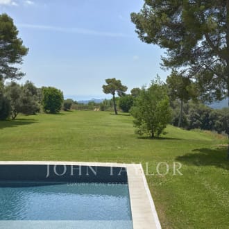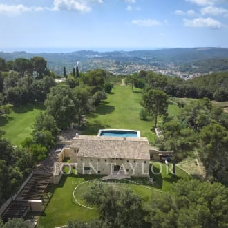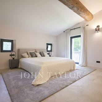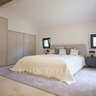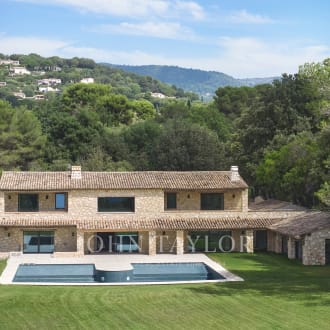 Joint Sole Agent: In a gated estate with a tennis court, this gorgeous 18th-century mas fully renovated of approximately 540 square meters is the perfect combination between authenticity and contemporary elegance. Each room tells a story, from the various reception areas to the five bedrooms, all with its own bathroom or shower. Ideally located on the highest point of the estate, the property enjoys an unobstructed view extended to the old village of Mougins. The multiple outdoor spaces, whether shaded or bathed in sunlight according to preference, evokes the gentle lifestyle and charm of Provence. The landscaped and flat park of 2800 square meters features a large swimming pool. An independent guest or caretaker apartment with living room and open kitchen, a bedroom with a shower room and dressing area. A double garage and a wine cellar complete this exceptional residence, which we invite you to discover. "When I walk out in the garden with my morning cup of tea, im greeted by a cacophony of birds hiding in the old trees, , a perfect and peaceful start of my day“ Cellene, owner of Villa Bella Vista