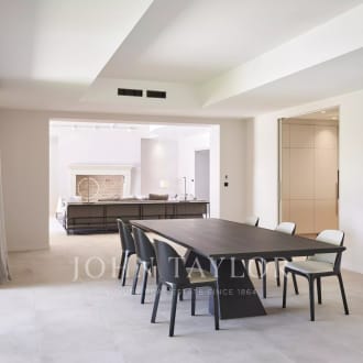 Paris 16 - Victor Hugo Avenue Victor Hugo/Henri Martin, on the 3rd floor of a luxury building, superb 347 sq.m. apartment, luxuriously renovated, offering vast and beautiful spaces with 3.50 m high ceilings, including : - A beautiful entrance gallery, - A large corner lounge with balcony, - A dining room, - A fully-equipped galley kitchen, - A study - A master suite with dressing room and marble bathroom, - Three bedrooms, each with its own shower room and toilet, - A sports room (5th bedroom), - A laundry room, - Guest toilet. - Plenty of built-in storage. Very sunny (South/East exposure), air-conditioned apartment. Plan perfectly dividing reception and private areas. Janitor in the building. Renovated high-quality common areas. A cellar completes this property. Parking solutions in the immediate vicinity.