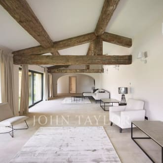 In a very quiet and most private setting, the elegance and refinement of a historic property in perfect condition, built in 1950 by Héléna Rubinstein with the renowned architect Louis Süe, comprising a main house of 491 sq.m living space, two guest houses, a caretaker's accommodation and a former sheepfold renovated throughout, amidst enchanting grounds of 31 523 sq.m. The ground floor of the main house features an office, and three bedrooms - each with an en-suite shower room. The garden level includes a reception room, a games room, the living and dining room with adjoining kitchen, utility room and laundry room. The first floor is dedicated to the master suite with dressing room and complete bathroom, as well as a 5th suite with shower room. The first guest house encompasses a living room, a kitchen, 2 bedrooms with adjoining shower rooms. The second guest house comprises a living and dining room, an open-plan kitchen with utility room and laundry room. On the 1st floor, three bedrooms, two shower rooms and a full bathroom. The caretaker's house of approximately 70 sq.m offers a living room, a kitchen, two bedrooms, a bathroom and includes three closed garages. An old sheepfold of 86 sqm living space, tastefully renovated throughout, called 'La Maison des Artistes' features a large living room, a dining room and open kitchen, a spacious bedroom with shower room. Five closed garages in all, 5 gates. The park is planted with 450 olive trees, includes several springs, a heated swimming pool and a petanque pitch. A timeless journey for lovers of history and architectural references in a classy setting.