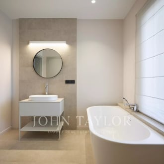 John Taylor is proud to exclusively present a truly unique property: a spectacular penthouse with panoramic views and four terraces located in the prestigious Salamanca neighbourhood. The refurbishment, by renowned architect Miguel Molins, makes masterful use of the spaces, maximising the extraordinary natural light provided by its three orientations and achieving a modern, elegant and cheerful atmosphere. The property occupies the entire eighth floor of the building and has a perfectly ordered layout around the large central courtyard in two distinct areas: a social area and a private area. As soon as we enter, we find the large living-dining room, flooded with light and facing West. The terrace, nearly 20 m², is integrated into the living room through floor-to-ceiling sliding glass doors that allow you to enjoy the beautiful panoramic views. A charming guest toilet completes the social area. The kitchen, with its modern design and top-of-the-range appliances, connects the social area with the private area. It stands out for its excellent natural light thanks to its large south-facing windows. The private area consists of four bedrooms, all with en-suite bathrooms, and all with their own access to terraces. There is also a separate area for laundry service. This luxurious penthouse is equipped with underfloor heating and cooling (aerothermal) and air conditioning in all rooms. Both systems are controlled from a single panel in each room (Airzone). The qualities are first class with natural oak floors laid in herringbone pattern, motorised thermal slat blinds with sectorised domotics, floor to ceiling doors made to measure, high efficiency LED lighting, data and antenna sockets in every room with fibre optic network, Cortizo aluminium windows and fittings, etc.