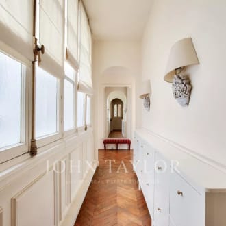 Magnificent apartment in a prestigious old condominium. With a surface area of 190 m2, this duplex apartment on the top floors with elevator has been renovated to a very high standard. Offering beautiful views of the Eiffel Tower and the Dôme des Invalides, this property is composed as follows: 5th floor: - entrance gallery - south-facing double living room with dining room - separate fitted and equipped kitchen - bedroom with shower room 6th floor : - master bedroom with bathroom, sauna and dressing room - 3rd corner bedroom (now a fitness room) with shower room All bathrooms in marble, perfect layout with no loss of space, sun all day, air-conditioning throughout. Located in the heart of the Saint Thomas d'Aquin district, one minute from rue du Bac. Possibility of purchasing furniture in addition to the price. A rare property in the neighborhood.