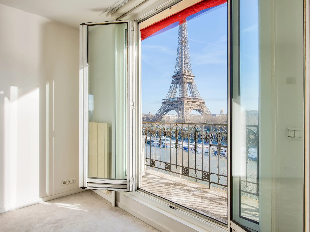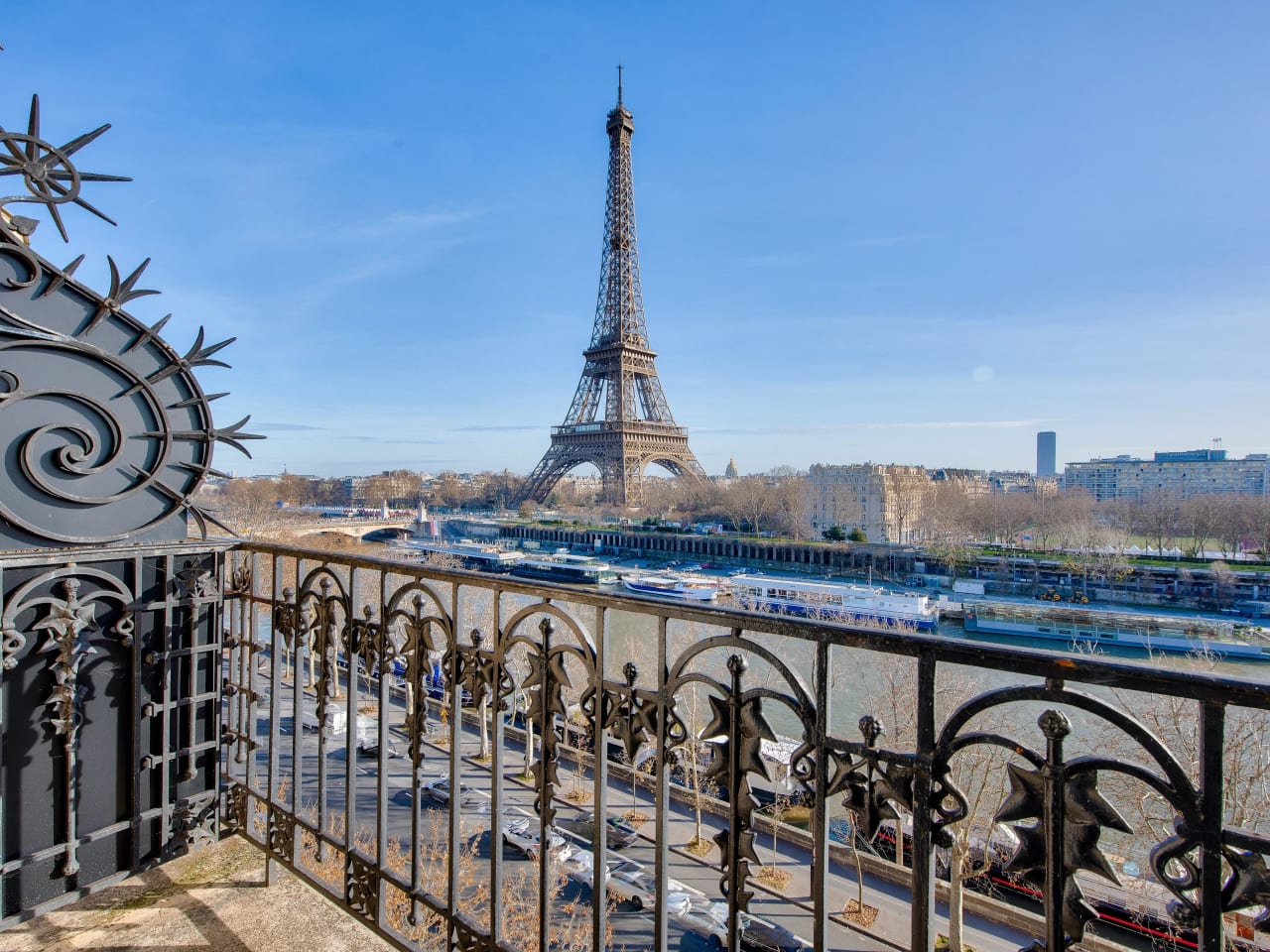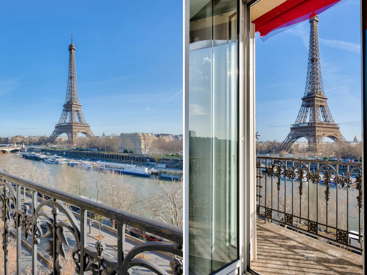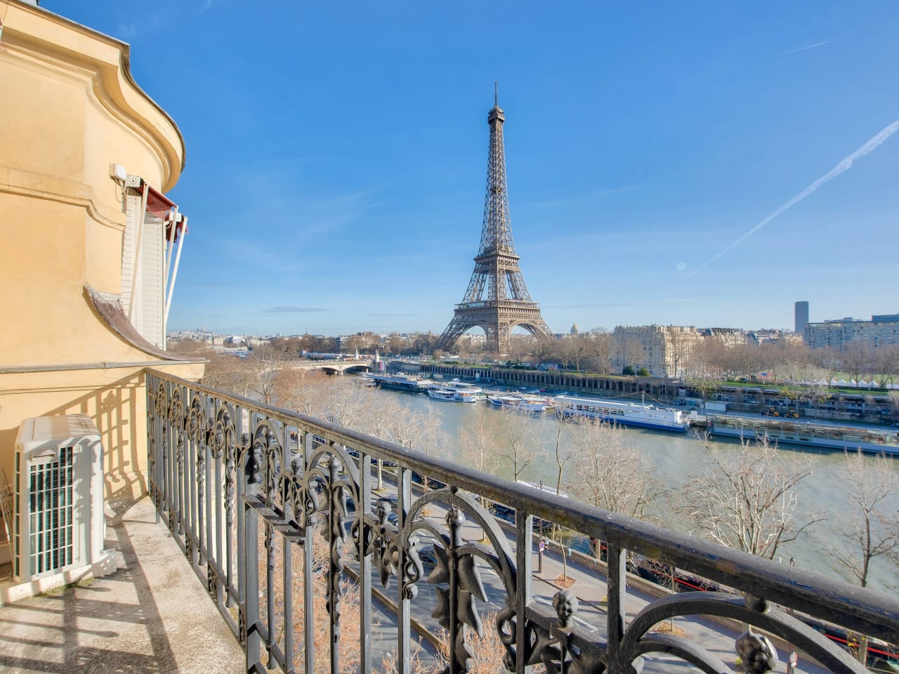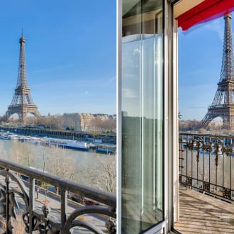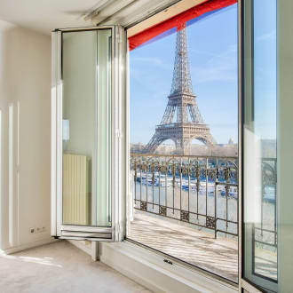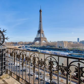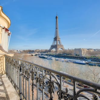 Trocadero. On the 7th floor of a beautiful period stone building on the banks of the Seine, a 168.14 m² apartment with three en-suite bedrooms offering breathtaking views of the Seine and the Eiffel Tower from the reception rooms and master bedroom, each of which has large balconies. Bathed in light, this apartment is in good condition and offers a rational layout. It comprises: An entrance hall, A large living room overlooking the Seine and the Eiffel Tower, A small lounge, A dining room adjoining a separate fitted kitchen, A master bedroom overlooking the Seine, with a dressing room, bathroom, and toilet, A second large bedroom with its own shower room and toilet, A third bedroom on the 8th floor, accessible via an internal staircase, with a room and a shower room and toilet. Guest toilet. Double glazing, air conditioning. A parking space (box) in the building for a medium-sized car, Two cellars. Caretaker in the building. Secure access. Beautiful common areas.