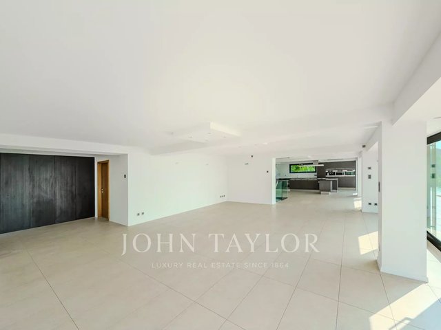 Located in the sought-after Californie district of Cannes, in a prestigious, secure residence with park and swimming pool, we offer this sumptuous 248 sq. m. apartment (215 sq. m. Loi Carrez and 33 sq. m. studio). This exceptional property boasts a superb 60 m² terrace, with breathtaking views over the Mediterranean and the Lérins islands. Entirely renovated by a renowned local architect, using noble materials of the highest quality, the apartment boasts a refined and luxurious contemporary style. Flooded with light and unoverlooked, it guarantees total privacy. It comprises an entrance hall, a vast living-dining room extending onto the terrace, an ultra-modern kitchen enclosed by a glass roof, a TV room, and a master suite with dressing room, bathroom, private access to the terrace and sea view. Two further en suite bedrooms have their own shower rooms and private balconies. A practical laundry room completes the space. An independent studio, two cellars and a parking lot complete the many assets of this unique property.