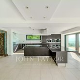 John Taylor presents this exclusive property in front of the golf course. Very modern structure and extreme qualities. The exterior enclosure of the house is made of different materials that highlight the volumetric variety of the whole. The bedroom area is characterized by metallic materials, while the service area of the house and related spaces have a concrete facade. the service area of the house and related spaces has an exposed concrete façade. Glass of different textures and opacities is the third material, together with steel, which completes the materiality of the exterior of the house. The composition of the enclosure ensures acoustic and hydrothermal insulation. Inside, given the spatial richness of the house and the juxtaposition of the spaces, the use of materials in walls, floors and ceilings is diverse (natural stone, metal, glass of different characteristics, ebony wood, plastic materials...). The entrance courtyard is presented as a space of transition between the impersonal world between the impersonal and dynamic world of the exterior and the comfortable and leisurely universe of the interior. The gurgling of water shows us the way. At the entrance there is an exhibition space. A room continues at double height of steel and glass that hides the access to the rooms. Museum. A space of great height, bathed in natural light. The art traps the environment. Kitchen designed exclusively by Ferrá Adriá, professional in its fires and plates. A steel sculpture that will delight the palate. All private areas, limited in their access by security doors, with code, to delimit the entrance of our privacy and provide these spaces with maximum security. Each space is characterized individually. Materials, geometry and natural elements interact to give each space its own entity. The spaces are versatile and admit multiplicity in their uses. The ground floor has an entrance hall, living room or museum, dining room, kitchen, office, elevator and three suites. The spaciousness of the house with 1721sqm, makes it feasible the visits. For this purpose, three suites have been designed on the upper floor of the house. In it, on 2 curtain wall corridors, we will also find the office, reading area, service room, and play area. In this society that leads us to live life with speed and stress, it is important to count on the grandeur of the water area of the house. The warm water takes over the entire space. Natural light slips through a skylight in the ceiling that exalts the emotions of tranquility, peace and freedom. Heated swimming pool, generously sized with relaxation areas, fireplace and relaxation areas, fireplace and chillout beds. In this universe could not miss the health benefits provided by the sauna and Turkish bath, dry heat in the sauna and moist heat in the Turkish bath. Gym equipped with the latest technology in machinery. Space for discotheque, meetings or celebrations room, equipped with the latest equipped as the best club in Madrid, even the nitrogen cooling machine, so that the evenings are even more even more pleasant evenings. DJ table The music, which is able to change the mood of the people, is very contemplated in all the spaces. The acoustic study of the house, by top professionals in the elaboration of loudspeakers, has designed a unique piped music in all the rooms. all the rooms. Meditation room. The walls, similar to an anechoic chamber anechoic chamber, cancel out all exterior and interior sounds. It is a room where traditional perceptions are altered to focus attention on the interior. The plot, with 4200sqm, is designed as a golf course within the house itself. golf course within the house itself. The life of the house extends outside the physical boundaries. Nature is incorporated into the architectural space, merging it with the interior. the interior. A true luxury within the reach of a select few.