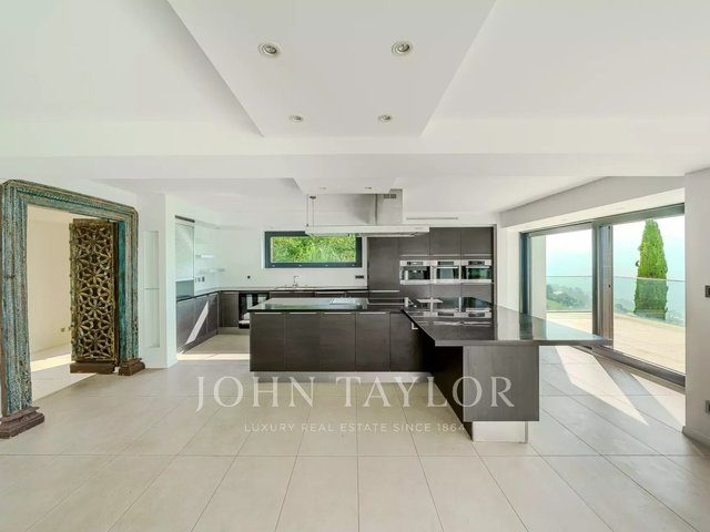 Nestled in the picturesque hills of the backcountry of Cannes, this recently renovated Provençal villa epitomises comfort, luxury, modernity and unrivalled quality, coupled with breathtaking panoramic views as far as the bay of Mandelieu. Access to the villa is through an impressive cathedral entrance, which immediately draws the eye to the spacious, light-flooded living area. The sliding doors of this entire level open onto the magnificent terrace and immediately convey a typical Mediterranean lifestyle. A double living room offers versatile functionality and promises convivial or contemplative hours in front of the open fireplace. The spacious dining room, with room for 12 guests, is directly adjacent to the open, modern Italian kitchen from the renowned Boffi brand, which makes cooking for family or guests a real pleasure. Directly adjacent is a romantic, large summer lounge with impressive ceiling beams, and here too, large sliding doors give the impression of being outside. This room offers a variety of uses that you no longer want to do without. A cosy home cinema with state-of-the-art technology completes the comfort of this level. The first floor, accessible via a lift, houses 4 suites with modern bathrooms, including the master suite with a spacious dressing room. Three of these rooms offer direct access to a large balcony with breathtaking panoramic views. The garden level of the villa inspires a variety of activities: a fitness room with shower, an air-conditioned wine cellar with separate tasting room for wine connoisseurs, a lounge, a guest room with shower and the practical laundry room of the house. From the double garage, you can easily reach all three floors by lift. The idyllic summer area offers the luxury of a pretty infinity pool with a modern pool house and functional kitchen and promises absolute joie de vivre and relaxing moments! The 5000 sq.m park with its own spring was designed by the renowned garden architect Jean Mus and gives this quietly situated property an incomparable touch and this exceptional Mediterranean charm. 35 minutes from Nice and Cannes, surrounded by prestigious golf courses and first-class restaurants, this property fulfils all the criteria for a dream residence !