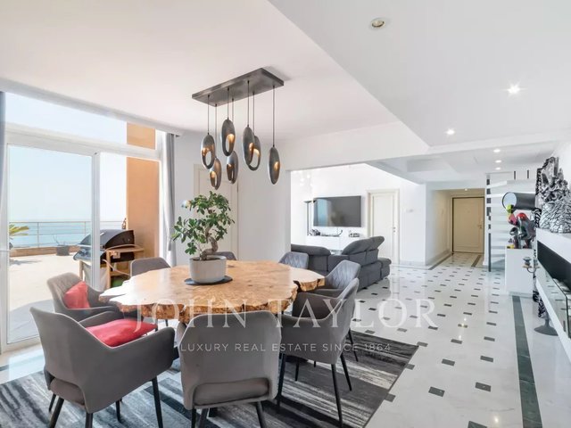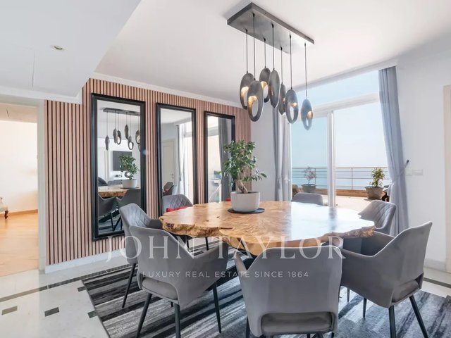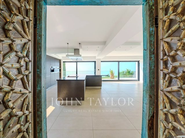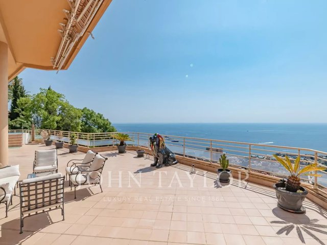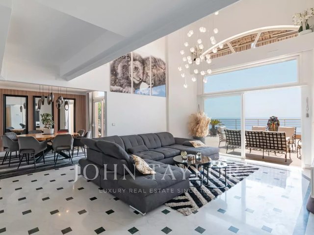This villa-apartment of mostly 400 sq.m. is located in one of the most beautiful and elegant residences of the Riviera. On the seafront with private access to the sea by funicular, with a 24/7 guard service, magnificent gardens and a very nicve swimming pool for residents. Spread over 3 levels, the villa has an independent entrance, a private swimming pool and a lift serving all floors. It offers a very high quality of finishing combined with the beautiful sea view from all the levels. It is composed of an entrance hall, a double living room opening onto spacious terraces facing the sea, a kitchen and a dining room, 4 bedrooms each with its own bathroom and a private swimming pool with a summer kitchen, dining area and outdoor lounge. A laundry room. A double garage and a parking for 2 cars. An opportunity not to be missed to become the owner of this magnificent place facing the sea and offering an excellent quality of life...