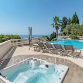 Boasting a flat garden of over 3.5 hectares, peace and quiet and uninterrupted views out to sea, this elegant, prestigious residence was completely renovated in 2016 and luxuriously decorated by Ralph Lauren in his chic, refined style. The property is located in an easily accessible residential area, just a few minutes from the village. The villa features a sumptuous entrance hall, an immense double living room with fireplace, a library with fireplace, a large dining room, a TV lounge, a well-equipped kitchen and 7 Suites, one of which is independent. Additional facilities include a billiard room, cinema, indoor swimming pool and garage for 2 vehicles. The villa's pleasant exteriors feature both covered and uncovered terraces. The outdoor pool area boasts a huge pool-house with summer kitchen, changing rooms and covered terrace. The pool measures 25m x 8m and is at the same height as the pool house. Easy access to the tennis court. Staff can also be accommodated on site: independent apartment, independent bedroom, possibility of a second independent bedroom.