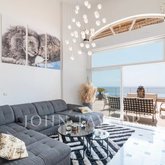 Discover this extraordinary villa that blends contemporary luxury with stunning panoramic views, located in one of the most exclusive areas of Ibiza. Set in an elevated position within a private and secure community, this property offers an experience of peace and privacy with 24-hour gated access. On the upper level, the villa features four spacious bedrooms, all with en-suite bathrooms and walk-in closets. Two of them are expansive master suites with direct access to private terraces that offer spectacular views of Ibiza town and Talamanca Bay. The main floor offers an open-concept living and dining area that seamlessly connects to a kitchen equipped with state-of-the-art appliances, perfect for gourmet cooking enthusiasts. This level also includes an elegant guest bathroom and a functional laundry room. All rooms open to generous terraces offering uninterrupted views and leading to a stunning outdoor area with a dazzling pool, ideal for relaxing or entertaining. An internal staircase leads to the lower level, where panoramic views remain a highlight. This floor includes four additional bedrooms, three bathrooms, and three versatile rooms that can be used as extra bedrooms, a private gym, a cinema room, or any other desired purpose. At the top of the property is an exclusive garage designed as a showroom, with space for several vehicles. Additionally, the villa is crowned with a large terrace the size of the property, ideal for social gatherings, sunbathing, or simply enjoying the views in complete privacy. This villa is the perfect retreat that combines modern design, elegant living spaces, and unparalleled views, making it an ideal choice for those seeking the best of Ibiza.