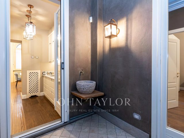 John Taylor exclusively presents this unique property, located on the second floor of a stately building built in 1900, excellently preserved. The property has 11 balconies overlooking the street, two of them are viewpoints typical of the period. Completely brand new, with an elegant and contemporary design by the prestigious architect Federico Rivera Río. We access the house through a welcoming hall, elegant and bright, with a stained glass window from the early twentieth century that leads to an extraordinary living / dining room and adjoining library, with 5 balconies facing south. The night area is composed of four bedrooms and four bathrooms: The master suite has four balconies that bathe the bedroom and bathroom in light. A second suite with its own bathroom/dressing room and two other bedrooms sharing a family bathroom. A guest toilet, a large service area with bedroom and bathroom for domestic service, as well as a large laundry area complete the complex. It also has a magnificent kitchen with central island with direct access to the dining room. The property has a concierge during regular hours. The price includes a storage room located on the roof of the building, which stands out for the size of its surface, and a parking space in the residents' parking lot of Antonio Maura. All the ingredients to make this a unique opportunity for location and performance. Los Jerónimos is a neighborhood in the Retiro district of Madrid. It is home to the Retiro Park and the Church of Los Jerónimos, from which it takes its name. It was created in 1865, on land that belonged to the former Buen Retiro Palace and was sold to the State by Queen Isabel II (1830-1904) to be urbanized. It is part of the so-called Landscape of Light next to the Paseo del Prado, declared a World Heritage Site on July 25, 2021. It is one of the most elegant and aristocratic neighborhoods of Madrid and its homes reach the highest prices per square meter of the capital. Among its most emblematic buildings are the Prado Museum, the Church of San Jerónimo el Real, the Royal Spanish Academy, the Madrid City Hall, the Ritz Hotel, the Palace of the Madrid Stock Exchange, the General Headquarters of the Navy and the National Museum of Decorative Arts. In the neighborhood of Los Jeronimos, in addition to the Retiro Park, is located since the eighteenth century, opposite the south facade of the Prado Museum, the Royal Botanical Garden.