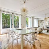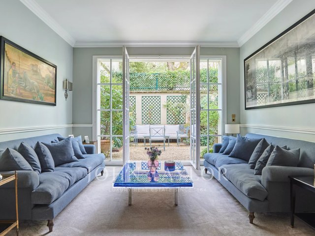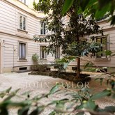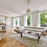 Paris 16th- Avenue Foch In one of the most beautiful and secured building with caretaker, in a leafy area, house-like 250 sqm garden-floor apartment with air-conditioning, entirely restored by a renowned architect. All in Italian travertine marble, the ceilings, moldings, woodwork and stonework have been crafted by France's finest craftsmen, combining modernity with the charm of the past. The reception part of the apartment such as the kitchen opens ongto a charming 180 sqm landscaped garden with private access giving directly onto the avenue and a wine cellar on the basement. Refined and contemporary property with very dfine lay-out, it features four suites each with its dressing room and bathroom. On the 7th floor, accessible by lift, on the 7th floor, one studio apartment 12 sqm entirely restored with equipped kitchen, shower, toilets, and an armored cellar complete this appartement. Unique and very rare property.