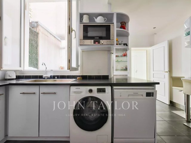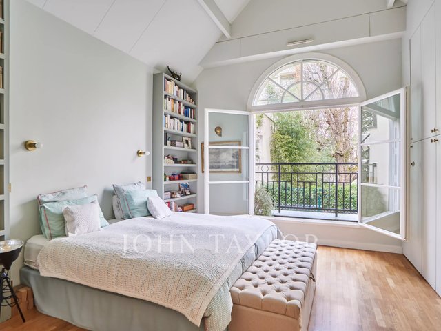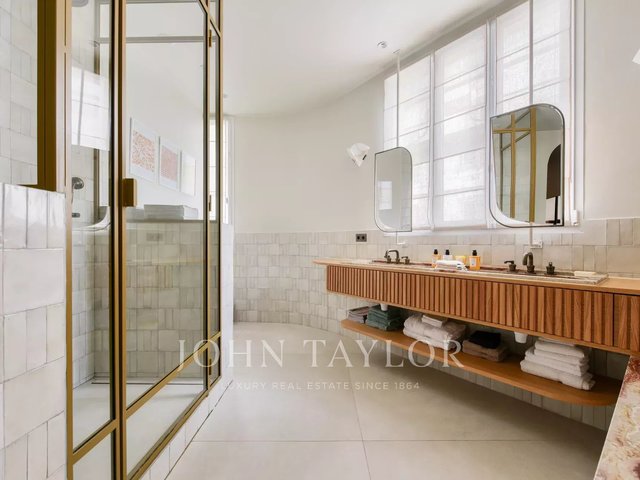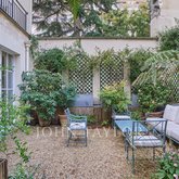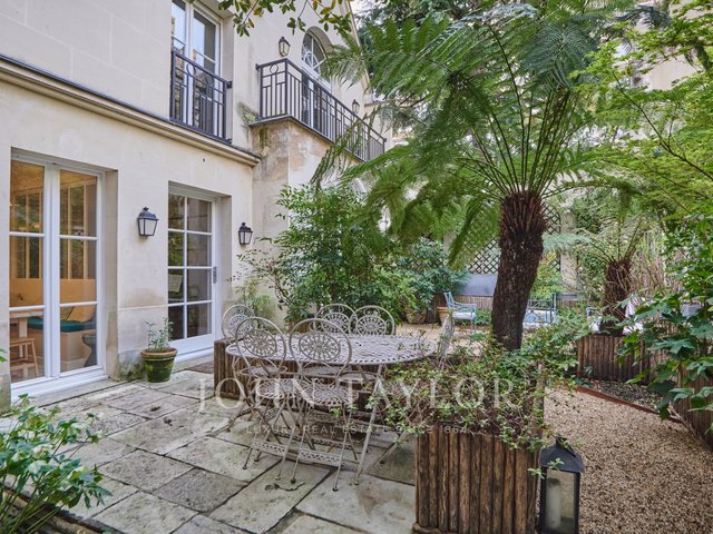 Just steps away from Le Bon Marché, hidden from view at the end of a charming paved and flower-filled courtyard, we present a stunning property dating back to the early 18th century. It comprises a main house with a floor area of 267.39 m² (234.30 m² under the Carrez law) surrounded by two lush gardens with terraces totaling 601 m² (300 m² on each side, exclusively for private use, non-buildable), as well as a 33.22 m² guest house (32.72 m² under the Carrez law). ###The Main House Built over three levels, the main house is laid out as follows: **Ground floor:** - An entrance hall - A dining room - A 33 m² living room opening onto both gardens and terraces - A 20 m² sitting room opening onto the second garden and a terrace - A bathroom with toilet - A guest powder room - A kitchen - A laundry room **First floor:** - A spacious, cross-lit "cathedral" master suite with a bathroom, dressing room, and access to a mezzanine - Two additional bedrooms, each with its own bathroom/shower room and toilet, plus an ironing/storage room **Second floor:** - A cross-lit study with stunning views of both gardens (can be converted into a bedroom) - A bathroom with toilet - A dressing room and attic storage under the eaves, as well as a mezzanine ### The Guest House Recently renovated, the guest house, discreetly located at the back of the second garden, features: - An entrance hall - A bedroom - A bathroom with toilet - A study ### Additional Features - Three beautiful historic cellars and a parking space complete this property. Its prime location, expansive outdoor spaces, tranquility, and unique charm make this property one-of-a-kind in Paris.