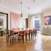 Exclusive. Paris 7. Saint Thomas d'Aquin Magnificent apartment located in a prestigious old condominium with janitor. With a surface area of 190 m², this duplex apartment on the top floors with elevator has been renovated to a very high standard. Offering beautiful views of the Eiffel Tower and the Dôme des Invalides, this property is composed as follows: 5th floor: - entrance gallery - south-facing double living room with dining room - separate fitted and equipped kitchen - bedroom with shower room 6th floor : - master bedroom with shower room, WC and dressing room - 3rd corner bedroom (now a fitness room) with shower room and sauna All bathrooms are marble, perfect layout with no loss of space, sun all day, air-conditioning throughout. Located in the heart of the Saint-Thomas d'Aquin district, one minute from rue du Bac. Possibility of purchasing furniture in addition to the price. A rare find in the neighborhood.