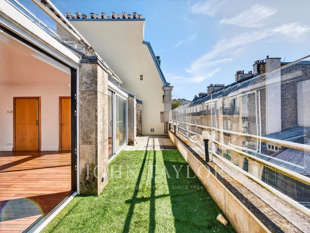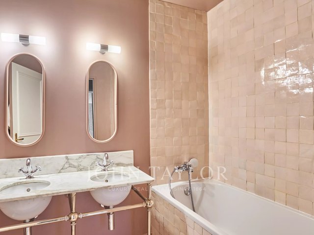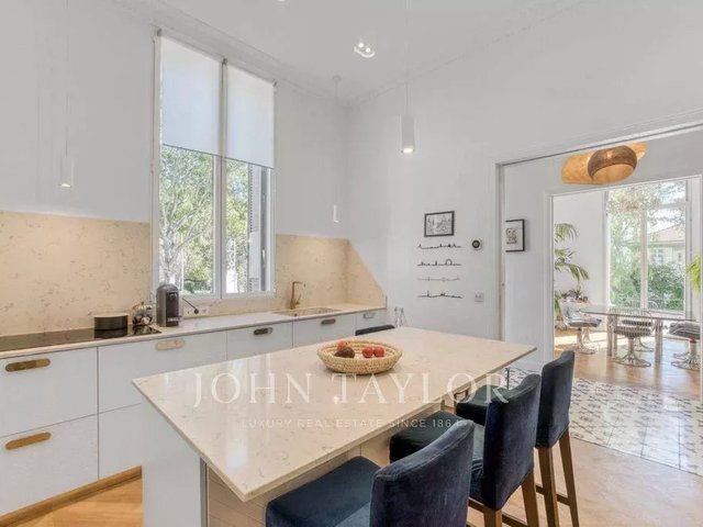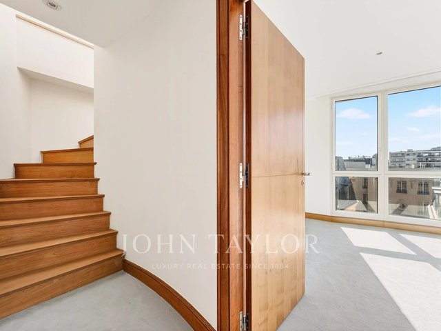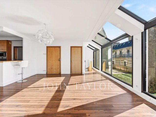 In the heart of one of the finest buildings on Avenue d'Iéna, directly overlooking Place des Etats-Unis, John Taylor Paris offers you this sublime 290 sqm triplex, completely refurbished and air-conditioned. Designed like a private mansion, with a 100 sqm private garden and a complete fitness area, this is a luxury family and reception complex in an ultra-secure environment. Just a stone's throw from rue de Chaillot shops, restaurants, palaces and prestigious local schools, this triplex will offer its owners an extraordinary lifestyle. Garden level: - Large entrance hall with stone staircase - 72 sqm living room with 4.30 m high ceilings, herringbone parquet flooring and marble fireplace - Fully-equipped mezzanine kitchen, top-of-the-range materials and equipment. - 100 sqm Garden, planted with trees and nicely screened, out of sight. Second floor : - 45 m² master suite - Two junior suites (25 and 20 m²) - 25 sqm modular space, now a guest suite, which can be converted into an office or TV room Basement: - Independent 22 m² studio, with its own entrance to the courtyard, for a professional or service studio. - Fitness area, with swimming pool (counter-current), sauna, gym, shower. A large parking space in the former stables can accommodate a large sedan or two city cars.