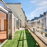 Impressive renovated penthouse of 650m² plus 20m² of terrace, located in one of the most exclusive streets in the Almagro area. The privacy of its terrace and family area, the four parking spaces in the building, the high quality of the renovation, and the unobstructed views of its social area, make this property a unique jewel in the real estate market. Upon entering the house we find an elegant hall that leads to the outdoor area where the bright living room with ceilings of 4 meters and several windows to the street. Also exterior are two bright and spacious bedrooms, the master with two dressing rooms and bathroom en suite, and the second with living room and bathroom en suite. In the passage to the second bedroom is the access to the upper floor where we find a large room used as a gym with sauna and bathroom en suite, and an office-storage room. In the hall there is a guest toilet. In the more familiar area we have coming from the hall a bright office overlooking the terrace, a family TV room with views and exit also to the terrace, a large dining room, the modern American kitchen fully equipped with high-end appliances, laundry area and separate ironing and separate service area of the house, a good guest bedroom with en suite bathroom, and a living room with fireplace and exit to the terrace. Classic building from 1940 completely renovated, maintaining classic elements such as its cage elevator, the original courtyard and the elegant portal. It has concierge service for housing and garage. Housing renovated with the highest qualities, as seen in the elegant hardwood floors, marble bathrooms, home automation and sound installation throughout the house, etc.. Underfloor heating and ducted air conditioning in all rooms.
