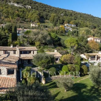 A rare opportunity for a large family or business to purchase a grand family estate of three villas situated in a very private but dominant position in the most sought-after location in the heights above Vence, on the Cote d'Azur. From practically anywhere in this magnificent 6-acre park designed by celebrated 'paysagiste' Jean Mus, there are 220-degree views which stretch from the mountains behind Monaco in the East, across Nice and Antibes to Cannes, Théoule and the Esterel peninsular beyond. First established by a British family almost 40 years ago, the estate has been developed steadily over the years with the restoration of existing buildings and the acquisition of neighbouring land and properties. In addition to the principal manor house, le Mas de l’Escarène, the estate now also includes a traditional stone-built Mas Provencal. L'Abey de l'Escarène has been rebuilt and restored from the ground up using the finest modern luxury materials. The restoration project has only recently been completed. With a total of 25 rooms spread across the three villas and their dependencies, the estate offers 12 bedrooms, 12 bathrooms, 2 swimming pools, a very large jacuzzi/hot tub, a tennis court and tennis pavilion, a sauna, a bouledrome, 2 orchards and 8 terraces that are home to 42 olive trees that yield 1.5 tonnes of olives and 150 litres of olive oil (2024 harvest) each year. An old shepherd’s hut (unrestored) is situated 5 terraces above the estate’s three villas below. The Domaine is one of the largest and most prestigious properties to ever come to market in the much sought-after area of St Paul and Vence. What sets this estate and its gardens apart from many other prestige properties in the area is that it offers total peace, calm and tranquillity. With no close neighbours, residents of the estate gain a sense of being right in the heart of Provence. Only the breath-taking 180-degree panoramic views of the entire coast remind you that all the attractions of the coast are within close striking distance (20 mins) with the beautiful historical town of Vence, Cité des Arts, just 5 minutes away by car. Armed with a flight-tracking app like Flight Radar 24, you can even watch your guests’ plane as it comes in to land on the runway of Nice airport, just 15 Kms distant, before setting off to collect them!