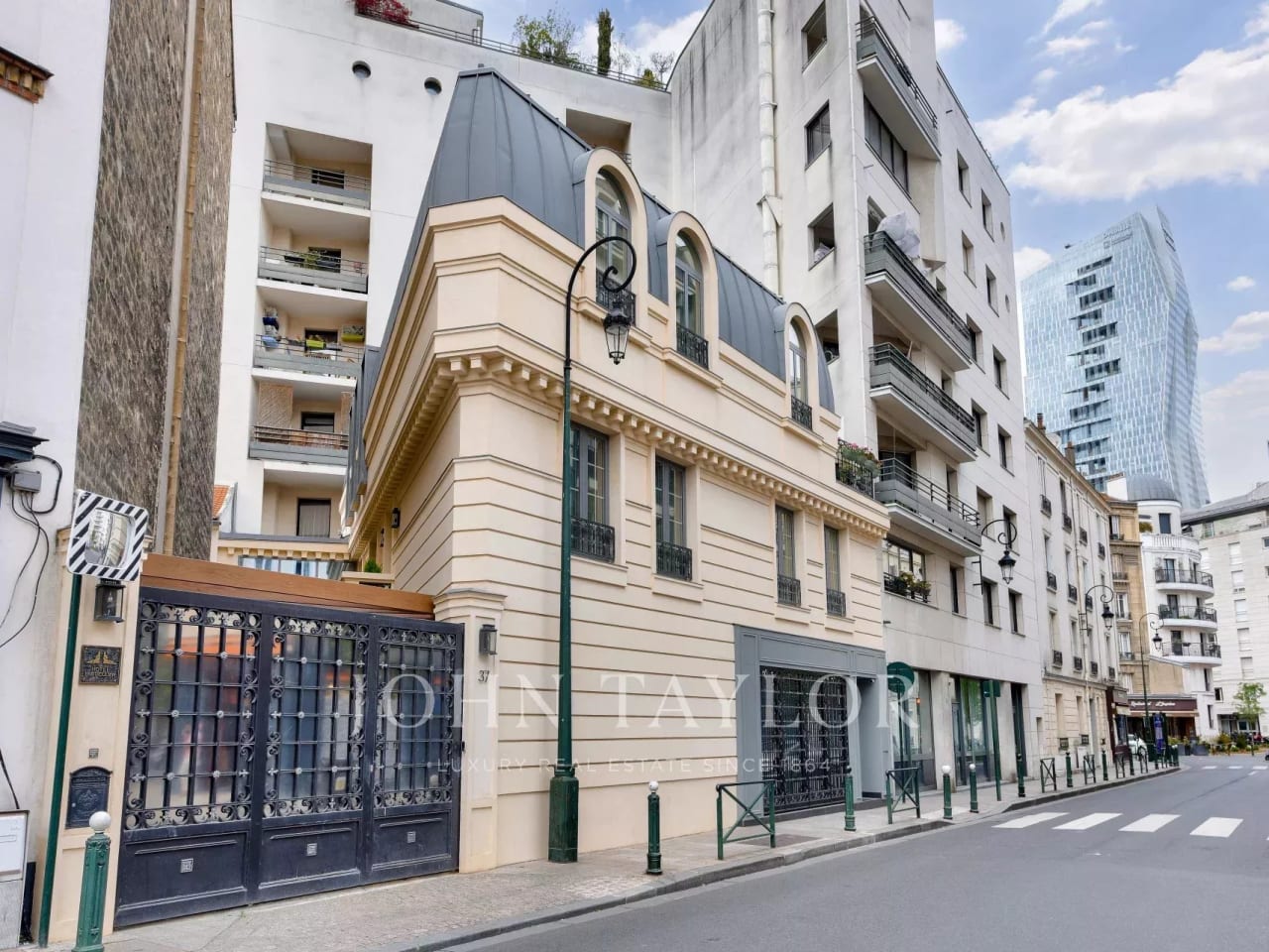 Located in the heart of a sought-after neighborhood in the 16th arrondissement, this remarkable private mansion, designed by renowned architect Pol Abraham, stands out for its distinctive character, generous volumes, and a stunning 90 sqm landscaped rooftop terrace offering open and peaceful views. With approximately 400 sqm of living space spread across four levels served by a private elevator, this light-filled property is currently divided into three independent apartments, each with its own separate entrance. The layout is perfectly suited for a large family, a multi-generational residence, or a prestigious investment. Layout: Ground floor: a charming 74 sqm one-bedroom apartment, accompanied by a spacious cellar. First floor (with independent street access): a spectacular duplex featuring impressive volumes, a cathedral-ceiling living room, open-plan kitchen with dining area, study space, a master suite with dressing room and bathroom, a second bedroom, and a shower room. A third bedroom can easily be added. Third and fourth floors: an elegant, fully renovated family duplex comprising four bedrooms with beautiful garden views and direct access to the 90 sqm landscaped rooftop terrace. The property benefits from two independent entrances, a private elevator serving all floors, and a private garage box in the adjoining building. A rare property on the market combining remarkable architecture, expansive living areas, exceptional outdoor spaces, and a highly sought-after location.