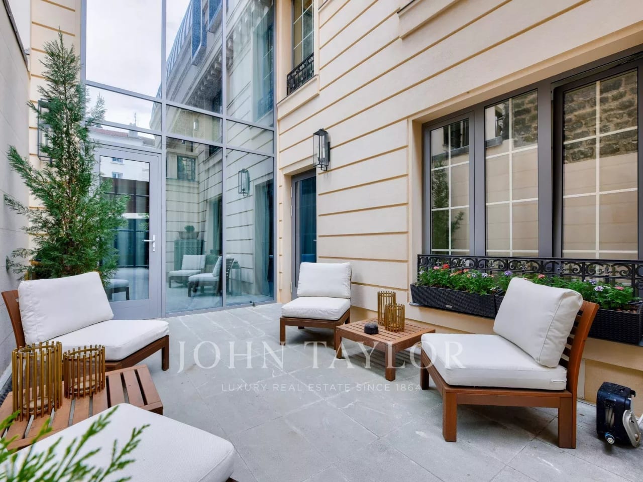 Unique. Just steps away from Le Bon Marché, hidden from view at the end of a charming paved and flower-filled courtyard, we present a stunning property dating back to the early 18th century. It comprises a main house with a floor area of 267.39 m² (234.30 m² under the Carrez law) surrounded by two lush gardens with terraces totaling 601 m² (300 m² on each side, exclusively for private use, non-buildable), as well as a 33.22 m² guest house (32.72 m² under the Carrez law). ###The Main House Built over three levels, the main house is laid out as follows: **Ground floor:** - An entrance hall - A dining room - A 33 m² living room opening onto both gardens and terraces - A 20 m² sitting room opening onto the second garden and a terrace - A bathroom with toilet - A guest powder room - A kitchen - A laundry room **First floor:** - A spacious, cross-lit "cathedral" master suite with a bathroom, dressing room, and access to a mezzanine - Two additional bedrooms, each with its own bathroom/shower room and toilet, plus an ironing/storage room **Second floor:** - A cross-lit study with stunning views of both gardens (can be converted into a bedroom) - A bathroom with toilet - A dressing room and attic storage under the eaves, as well as a mezzanine ### The Guest House Recently renovated, the guest house, discreetly located at the back of the second garden, features: - An entrance hall - A bedroom - A bathroom with toilet - A study ### Additional Features - Three beautiful historic cellars and a parking space complete this property. Its prime location, expansive outdoor spaces, tranquility, and unique charm make this property one-of-a-kind in Paris.