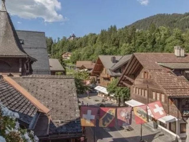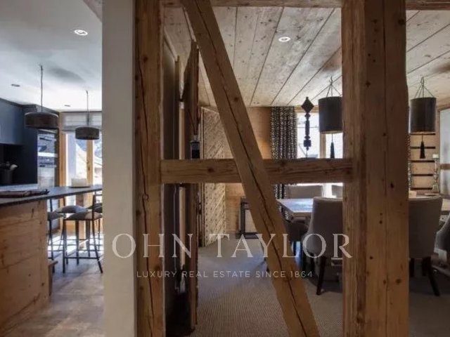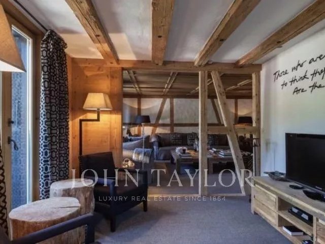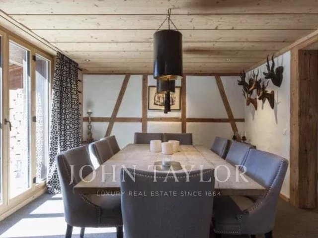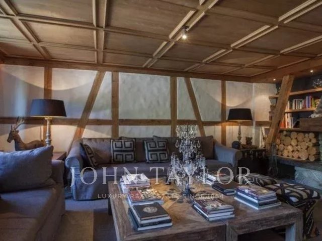 The apartment spreads over 3 floors, and affords wonderful views over the roof tops of the Gstaad village and across to the renowned Gstaad Palace.