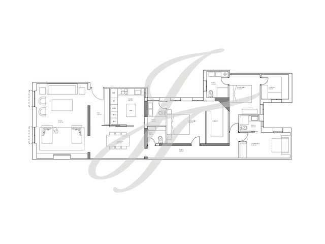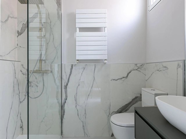 It has three bedrooms all with en suite bathrooms. The two master bedrooms also have large dressing rooms. There is also a guest toilet.