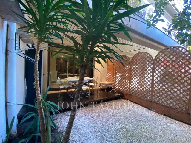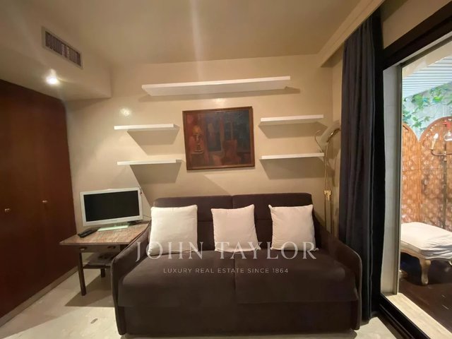 For rent in MONACO Moneghetti sector in LE BEVERLY PALACE, block A, luxury residence furnished studio (24 m²) with private fenced garden (17 m²).