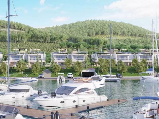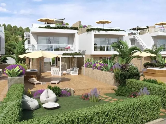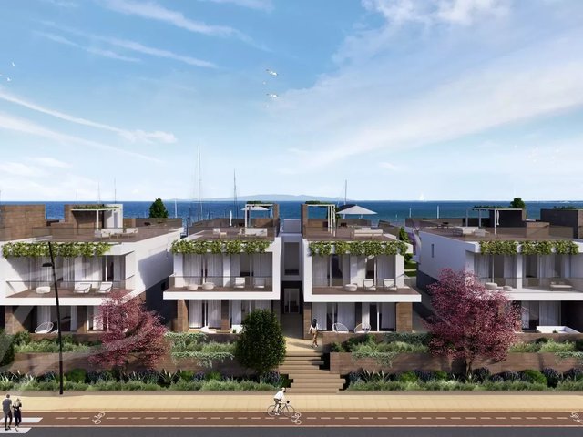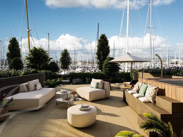 Ground-floor apartments feature a large, bright living area with sea and marina views, two double bedrooms, and two bathrooms. The sea-facing patio, strategically oriented for breathtaking sunsets over the gulf, becomes a peaceful oasis.