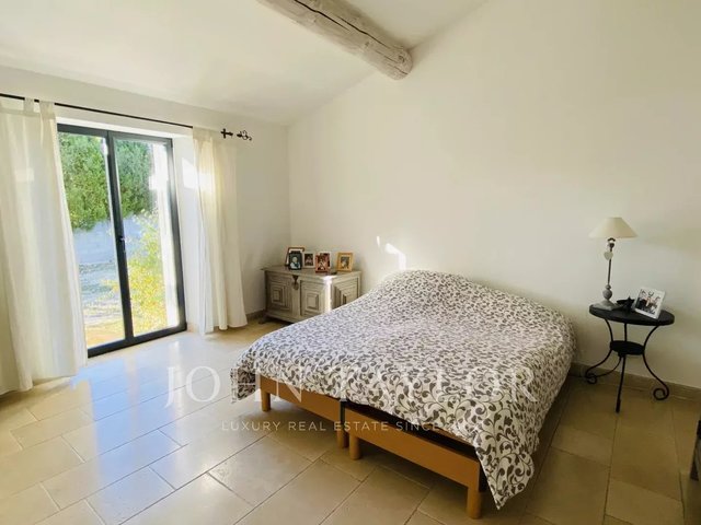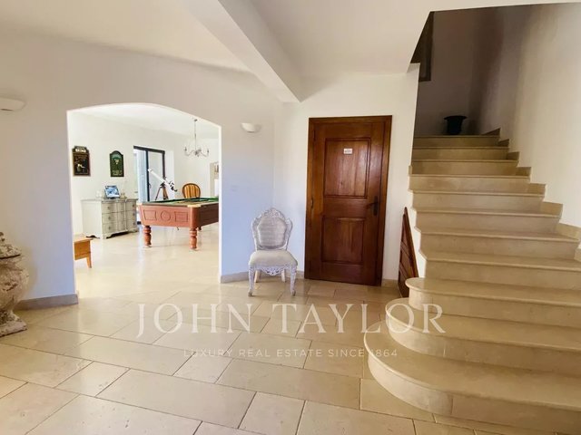This elegant Provençal Bastide spans two levels and is beautifully oriented to the south, bathing each room in natural light. The residence is centered around a spacious living area on the ground floor, complemented by a relaxation lounge, a dedicated office space, a fully-equipped kitchen, a laundry room with pantry, and an en-suite bedroom.