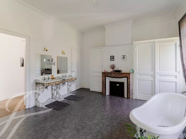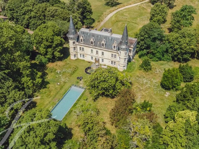 Nestled in the heart of the lush countryside, on the outskirts of Bordeaux, this majestic 19th-century stone château, steeped in history, exudes its charm across approximately 5 hectares of land, offering a breathtaking panorama.