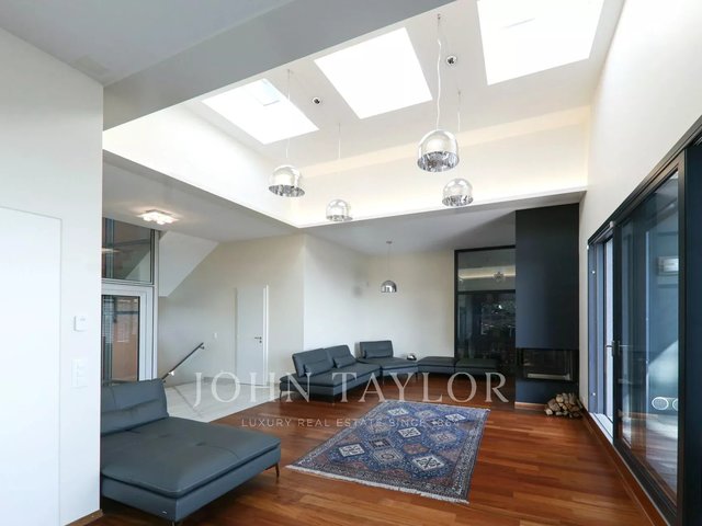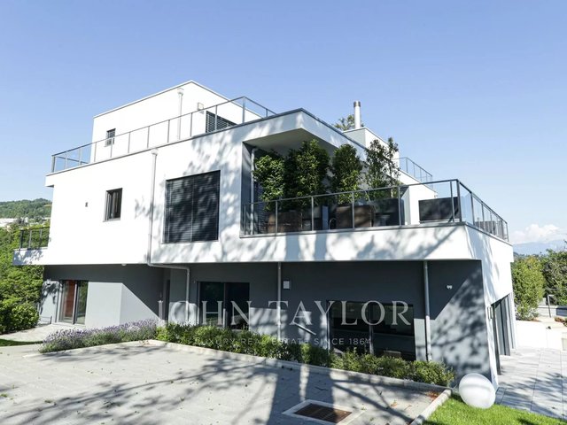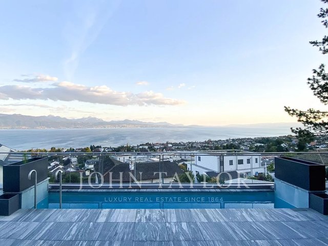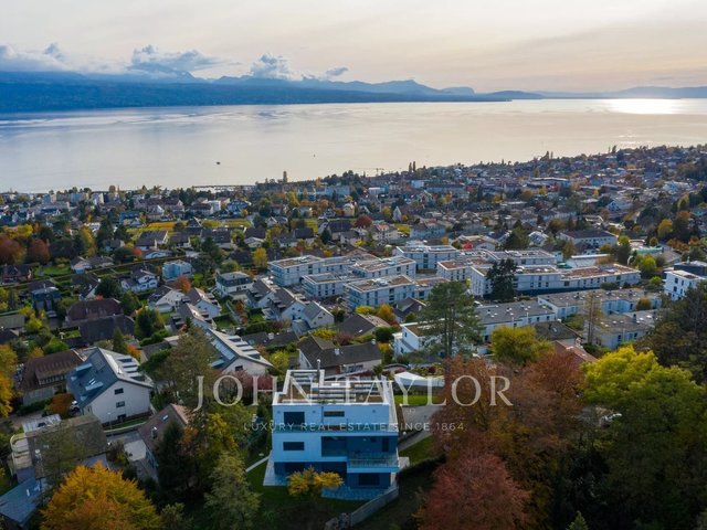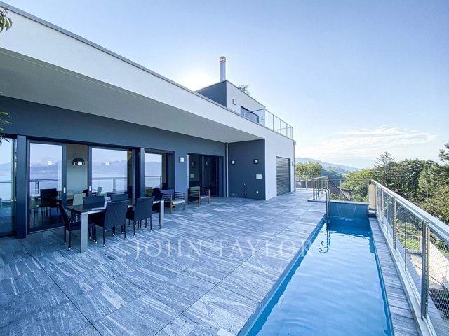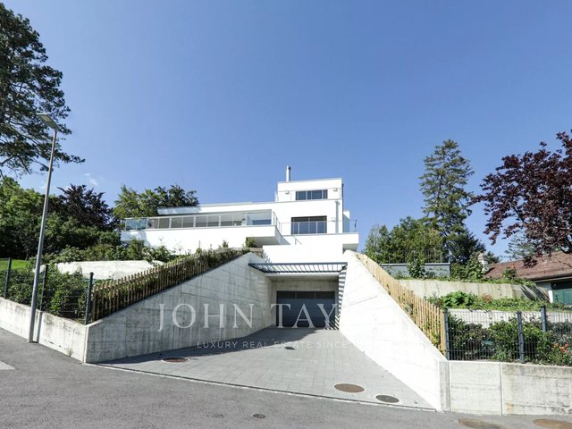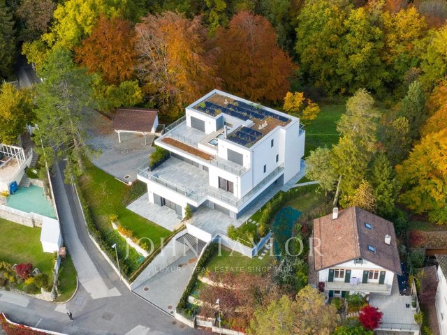 This magnificent house in Pully, Switzerland, spans 658 m² and comprises 8.5 rooms, including 5 spacious bedrooms. Features include a fireplace, sliding windows and a solar panel system guaranteeing low energy consumption. The large picture windows offer spectacular views of the surrounding landscape.