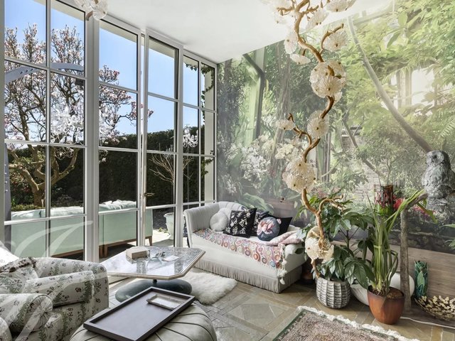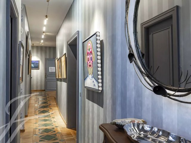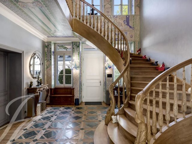 The main property consists of 9 bedrooms spread over three levels and served by an elevator. On the first floor, you will find a vast living room with fireplace and very high ceilings, a large dining room, a beautifully decorated winter garden, a library room in precious wood, a home cinema and a magnificent semi-professional kitchen, all overlooking the terrace and the superbly planted garden. A guest toilet, a bedroom with bathroom for the staff and several storage rooms complete this level. An underground access leads directly to the covered swimming pool as well as the spa.