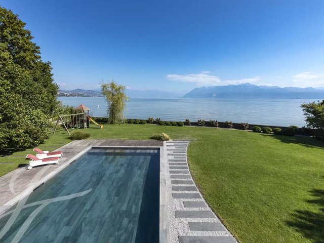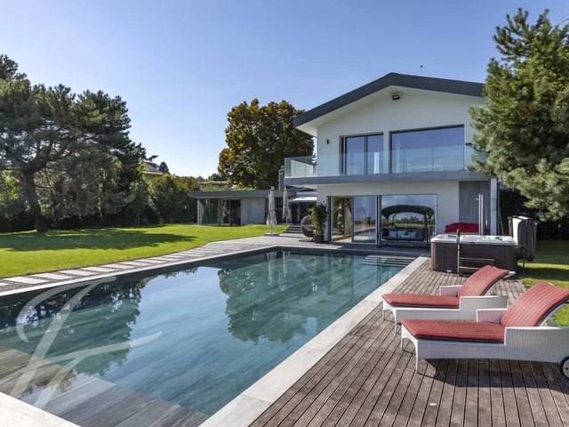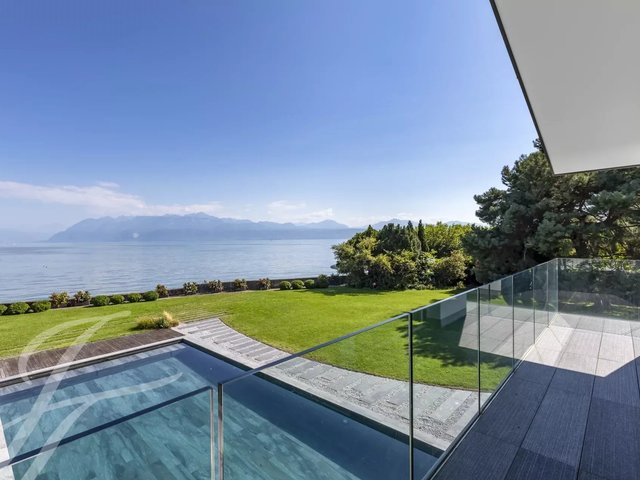 Erected on a splendid waterfront plot of approximately 2'870 m², this magnificent residence is located in the picturesque town of Saint-Sulpice.