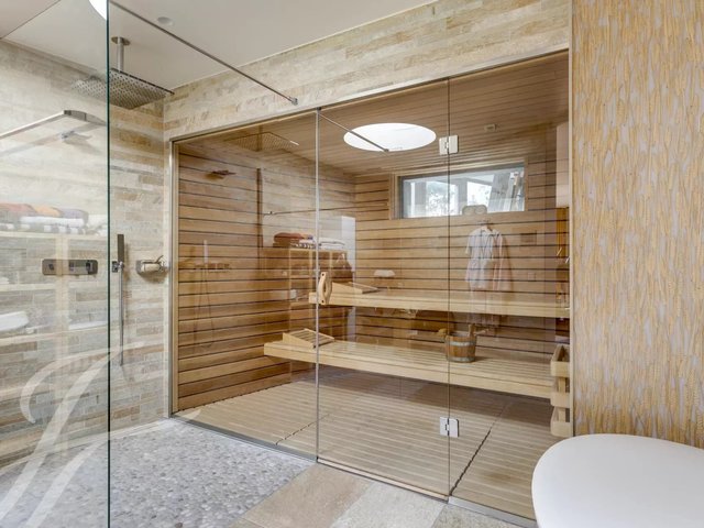An annex dedicated to well-being includes a gym, a sauna, and a steam room. Although accessible from the outside, it is separate from the main house, thus ensuring the residents' privacy.