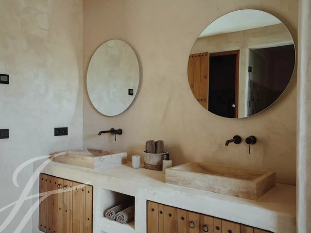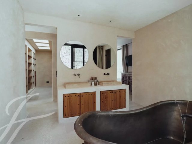 In the living room there is an 18th century fireplace to enjoy the cosy winter nights in Ibiza.