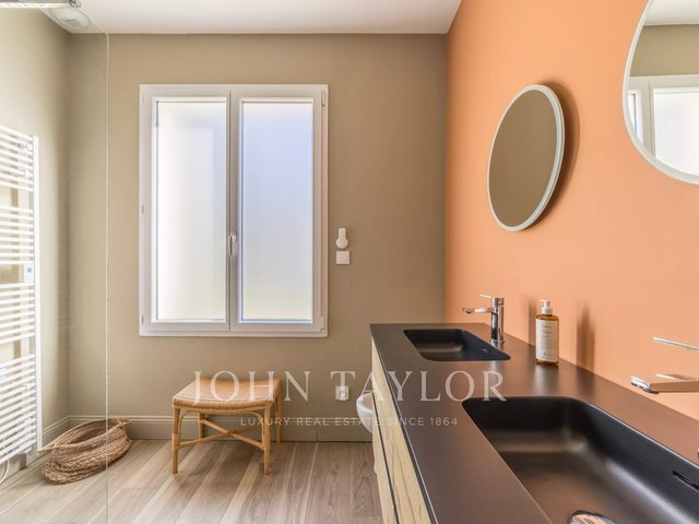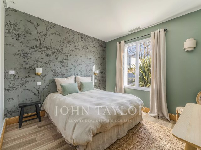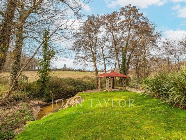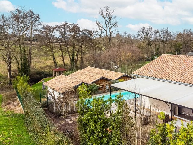 Located just 25 minutes from Bordeaux and 15 minutes from Saint-Émilion, this character property develops approximately 300 m² in the heart of a preserved natural environment. Situated on a wooded land of hundred-year-old oaks, bordered by a stream, it benefits from a quiet and confidential setting.