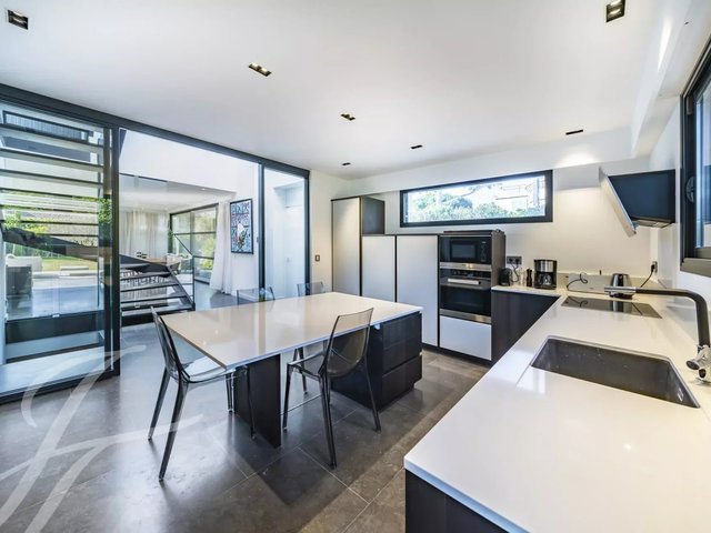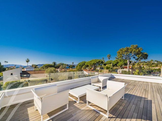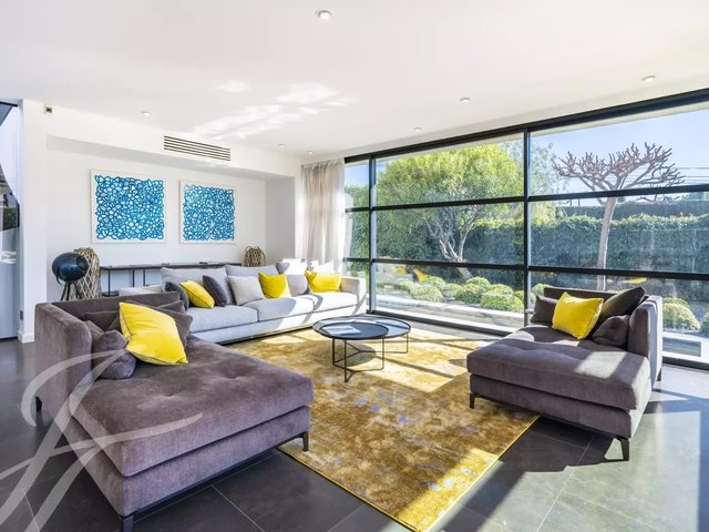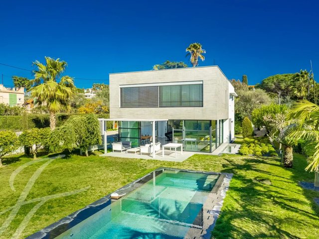 Beautiful new contemporary villa completed in summer 2020, offering 320 sqm living area surrounded with 940 sqm grounds and enjoying nice sea views (the Bay of Juan les Pins and the Iles de Lerins) from its roof top terrace/solarium.