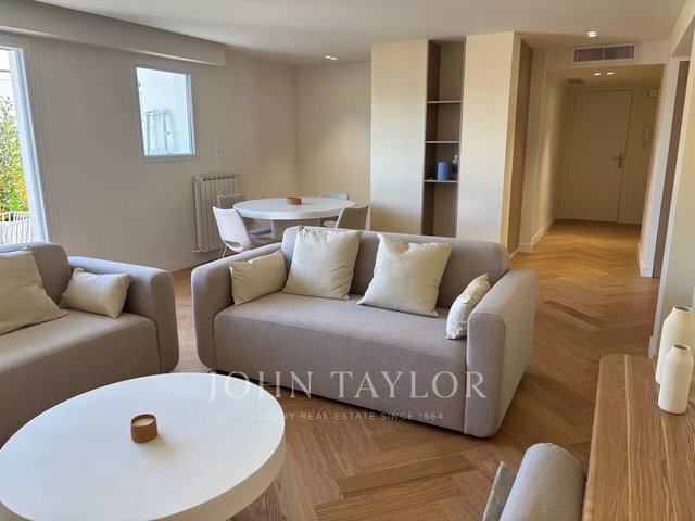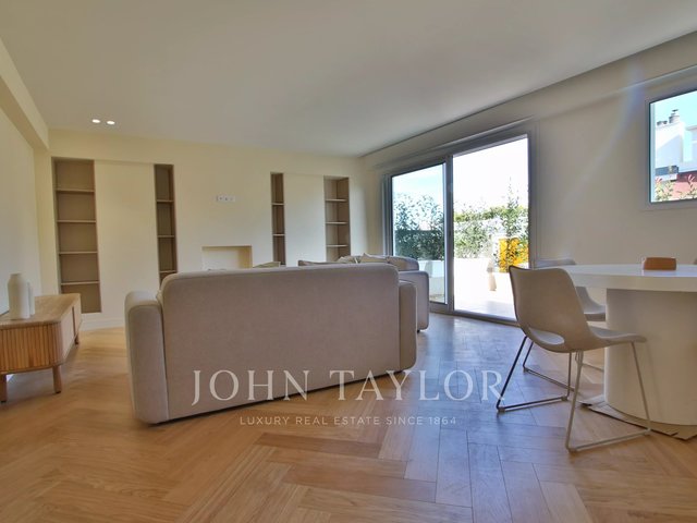 Just next to the "Port Vauban" and the SNCF train station, this beautiful 97sqm apartment offers a glimpse of the sea. Completely renovated, it is located on the top floor of a prestigious building.