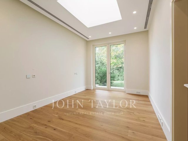 On the garden level, the left wing includes a self-contained apartment with its own kitchen, living area, and bedroom . On the opposite side, there is another generous suite with garden access, along with a multi-purpose room that can serve as a gym, spa, cinema, or studio.