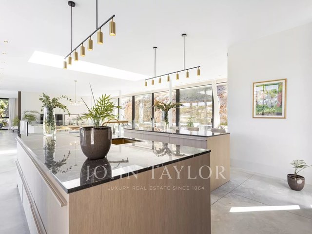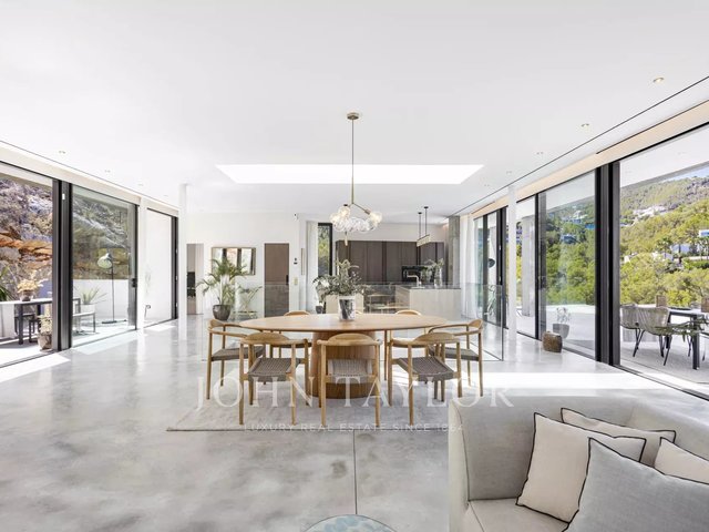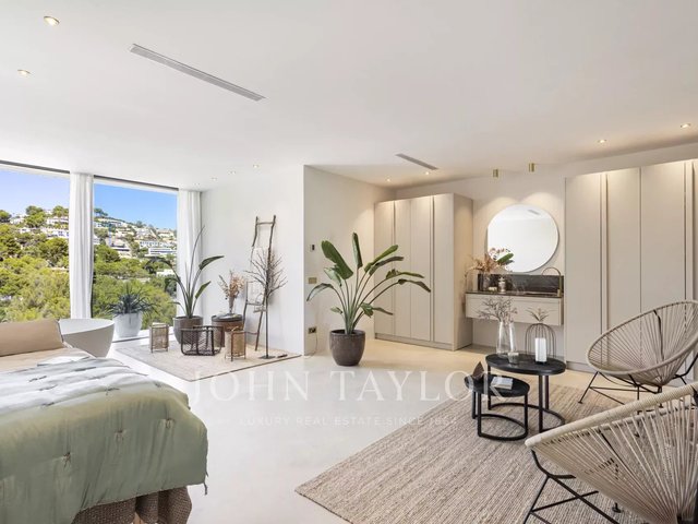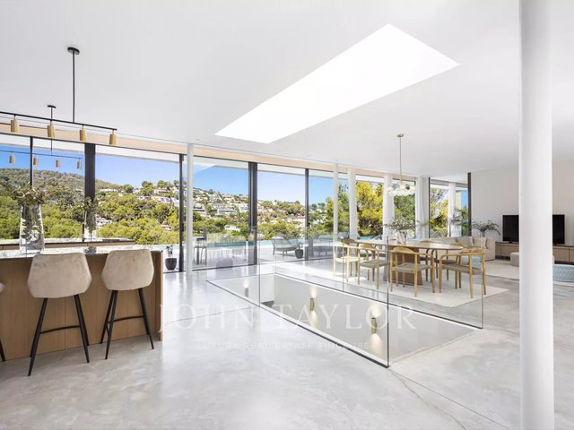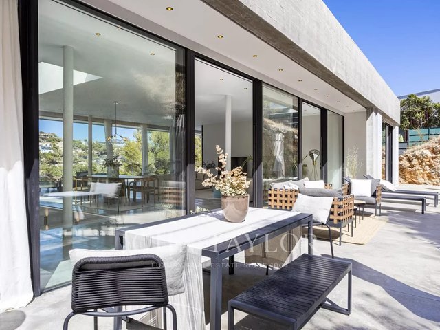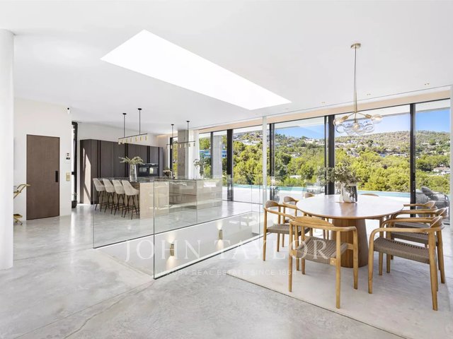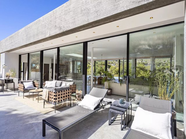 Spectacular newly built villa in the exclusive area of Son Vida. With a striking architectural design in exposed concrete, this two-storey property offers a spacious interior living space of 455 m2, with the exciting possibility of adding a further 383 m2. An oasis of tranquillity and luxury set on 2,635 m2 of land, with beautiful views of the golf course, Palma city and Mediterranean Sea. The design of this villa is the result of a perfect fusion between modern elegance, comfory and function. The exposed concrete brings a unique and bold aesthetic, highlighting the avant-garde personality of the property. The floor to ceiling windows and open spaces guarantee an abundance of natural light, creating a bright and welcoming atmosphere in every corner of the property. The outdoor area is simply breathtaking. Enjoy moments of relaxation and leisure on the 68 m2 porch, ideal for social gatherings or to enjoy the warm Mallorcan nights. The extensive 120 m2 terrace offers a perfect space for sunbathing and enjoying the panoramic views that the property has to offer. A jewel in its own right, the 28-metre swimming pool invites you to enjoy refreshing dips while contemplating the beauty of the surroundings. With great privacy, this area of the property becomes an oasis to relax and enjoy unforgettable moments. In addition, this villa has a spa area, where you can pamper yourself with various relaxation and wellness options. The interior layout has been meticulously thought out to offer a functional and comfortable space. With four spacious bedrooms, each with its own private bathroom, the villa provides an intimate and pleasurable environment for its residents. The master suite creates a dreamy environment for relaxing and enjoying privacy. The common areas are not far behind. The living room and dining room intertwine seamlessly, creating a cosy and spacious space to share moments with family or friends. In addition, the kitchen, modern in design and equipped with the latest amenities, is the perfect place to unleash your culinary creativity. In short, this newly built villa in Son Vida is a true masterpiece of modern architecture, combining stunning design with the comfort of home.