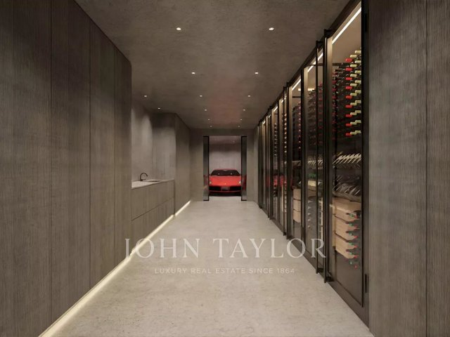The basement, with approximately 320 m², includes a garage for three cars, a pantry, and a wine cellar. This ample space can be adapted to different needs: from a wellness area or a private cinema room, to a sixth bedroom with en suite bathroom.
