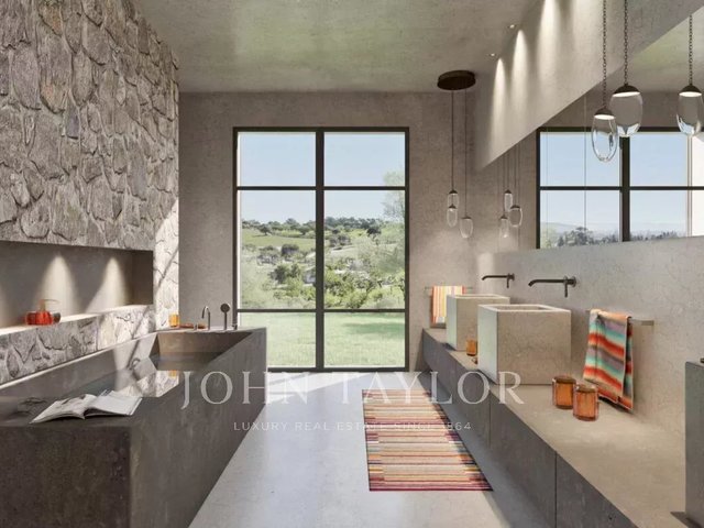From the first step into the elegant entrance hall, an architectural design that perfectly integrates the indoor and outdoor spaces is revealed. The open concept layout connects the main living room, kitchen and dining room with various covered terraces, ideal for al fresco dining, along with a fully equipped outdoor kitchen. The exterior is also home to a large swimming pool, a true heaven of peace framed by panoramic views of the surrounding landscape.