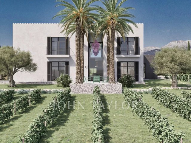 Situated at the foot of the imposing Tramuntana mountains, this newly to be built estate represents a reinterpretation of contemporary luxury. With 21,000 m² of land and a built area of 680 m², this property offers an exceptional level of privacy, unrivalled natural surroundings and even the possibility of creating your own vineyard.