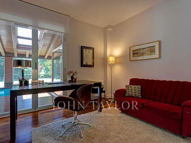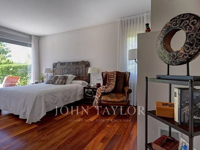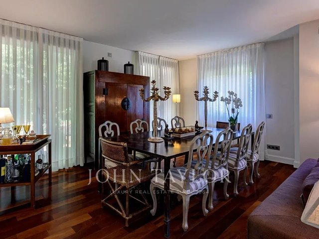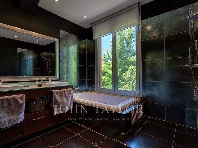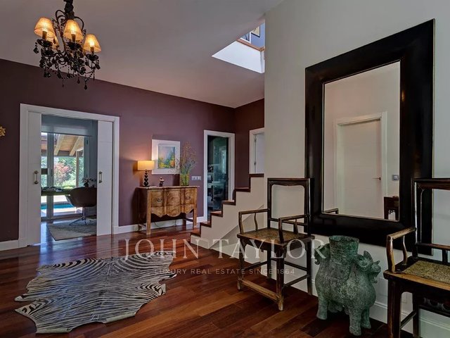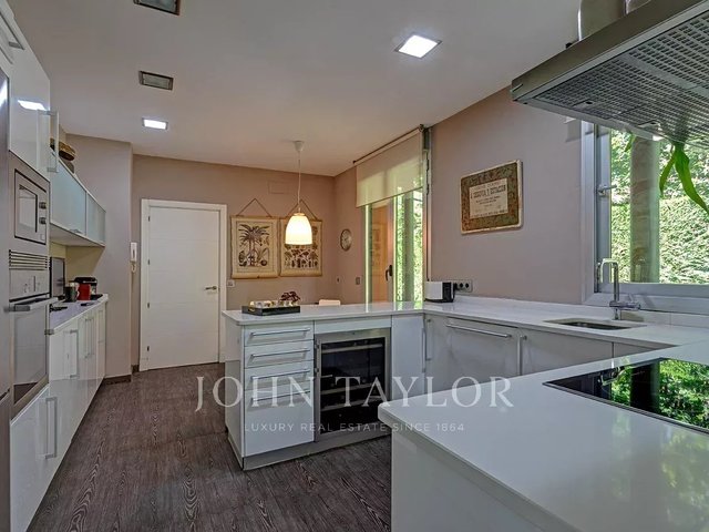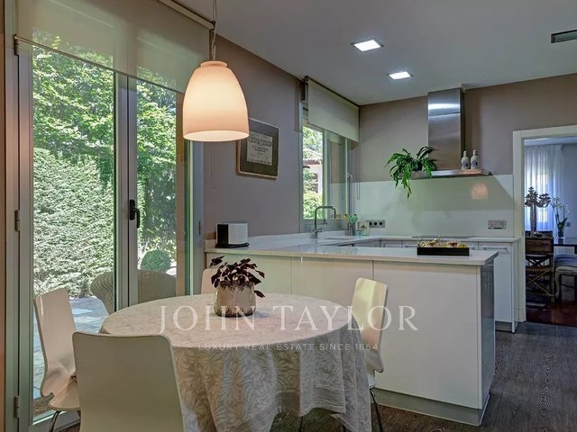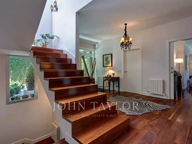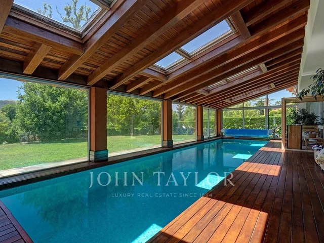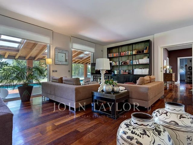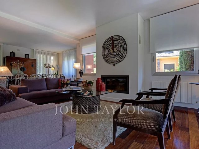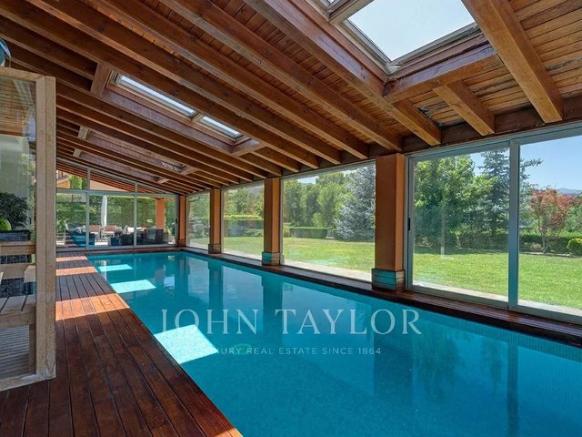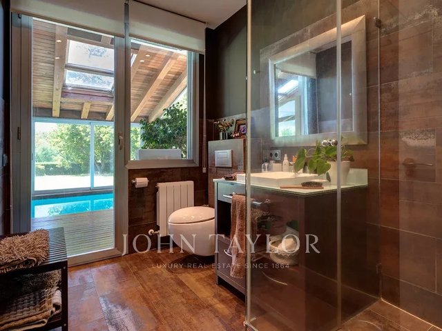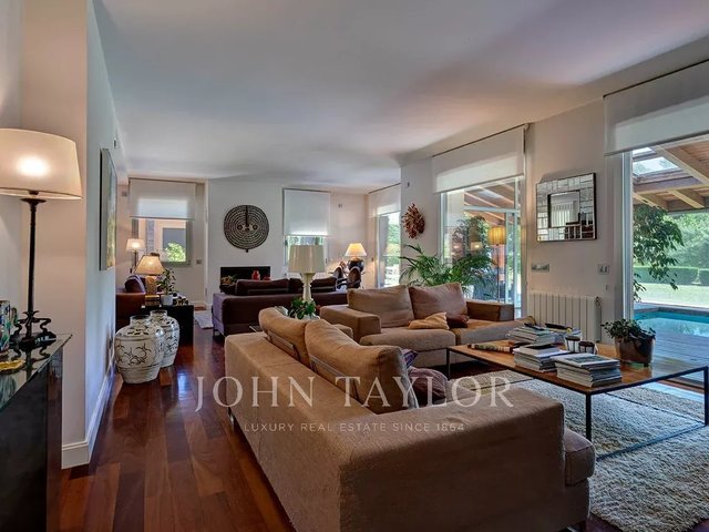 Distributed in three comfortable floors, the main floor consists of a large and bright living room with fireplace and large windows with access to the garden and the magnificent covered and glazed swimming pool, heated, with dehumidification system, which, in summer can be semi exterior to be able to open all the glazed enclosure.
