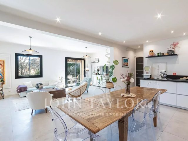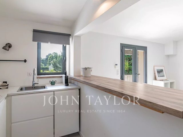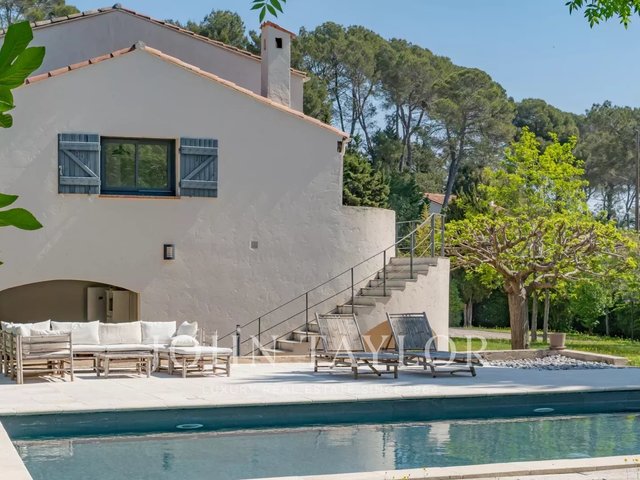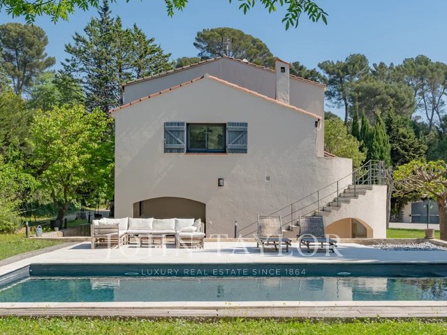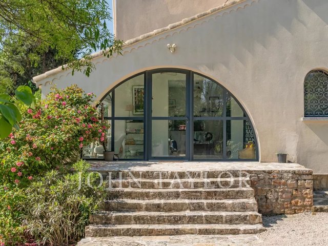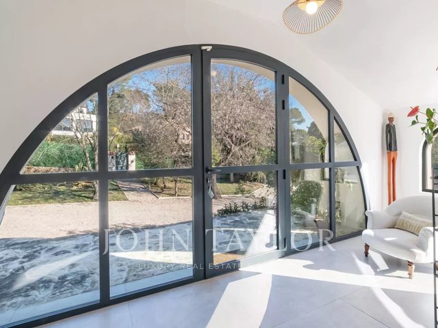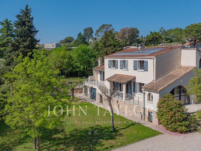Nestled in a gated and sought-after domain, this villa enjoys a serene setting while being ideally located near a renowned golf course, Mougins School, and Sophia Antipolis.