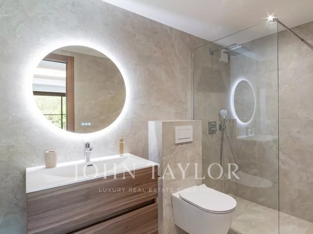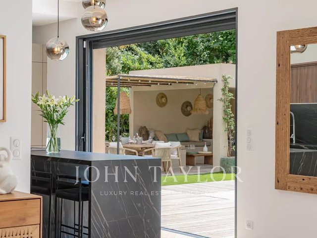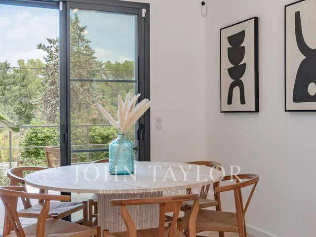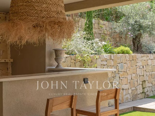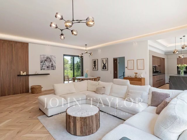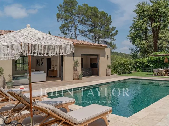 SOLD: Nestled in the heart of a sought-after estate in Mougins, this superb villa, entirely renovated with quality materials, stands on a landscaped garden offering absolute tranquility. The villa comprises a beautiful entrance hall, a large, bright, south-facing living room, an open-plan kitchen, four bedrooms including a magnificent single-storey master suite with en suite shower room and dressing room. The bright, spacious living areas open onto a landscaped garden and magnificent swimming pool, inviting you to relax. A summer kitchen, ideal for outdoor entertaining, and a garage complete the property. Located in a quiet, secure environment, close to the Mougins School and the Cannes-Mougins golf course, this villa offers an exceptional living environment.
