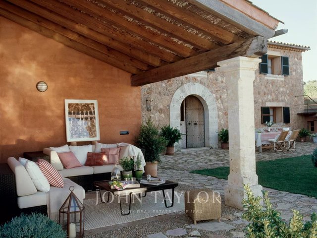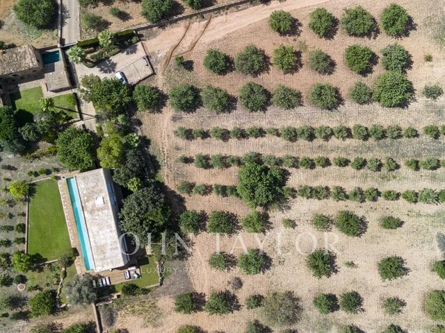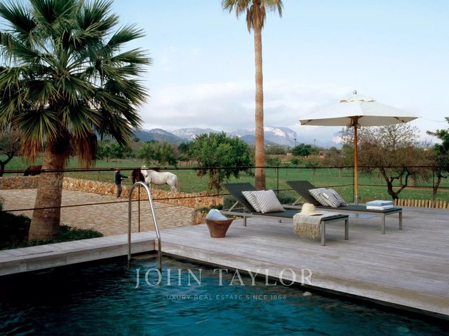 With a plot of 28,000 square meters, the property offers complete privacy and a unique natural setting with more than two hundred century-old carob trees, horse stables, a riding arena and an agricultural building. All of this is framed by the incomparable views of the Serra de Tramuntana, and only fifteen minutes by car from Palma.