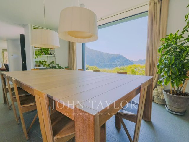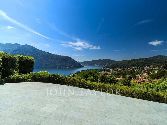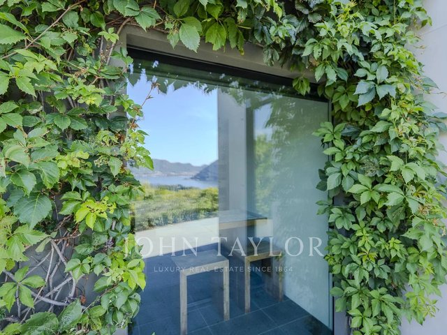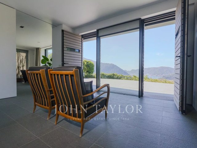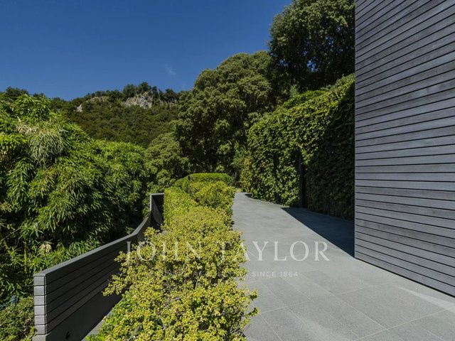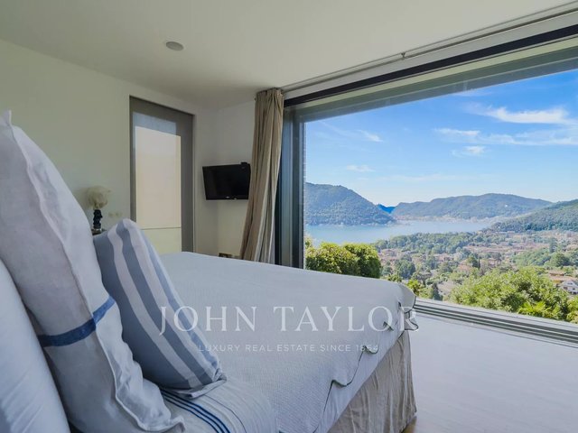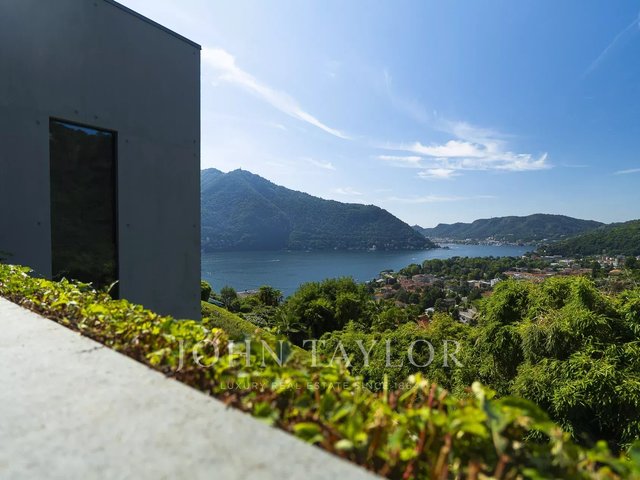 Just a few minutes from the center of Cernobbio, this modern villa of about 270 sqm embodies the perfect balance between minimal architecture, natural materials, and biophilic philosophy. Spread over three levels and immersed in a 1,400 sqm garden, it offers an unparalleled view of the lake thanks to large full-height windows and panoramic terraces of over 160 sqm. The interiors, refined and bright, include a large living room with fireplace, custom kitchen with island, four bedrooms, and four bathrooms. The sleeping area provides privacy and comfort, with warm parquet floors and high-level finishes. Outside, an infinity pool overlooks the lake, while a sun deck and outdoor dining areas invite relaxation. The villa is equipped with sustainable solutions and home automation technology. A covered garage for three cars and four outdoor parking spaces completes the property. A unique residence, where nature, design, and comfort coexist in perfect harmony. Negotiation confidential in office.