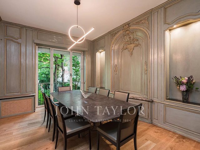 EXCLUSIVE TO JOHN TAYLOR, elegant residence of approx. 270 sqm for sale in the heart of Milan’s historic center, set within a beautifully preserved period building. The apartment opens onto a spacious living area featuring a lounge, dining room, fully equipped kitchen, and guest bathroom. The sleeping area includes four bedrooms and three bathrooms, thoughtfully arranged to ensure both privacy and comfort. A particularly remarkable feature is the private garden of about 240 sqm, lushly landscaped and complemented by a charming veranda. The property is completed by a large cellar and two parking spaces within the building. Private negotiation in our offices.